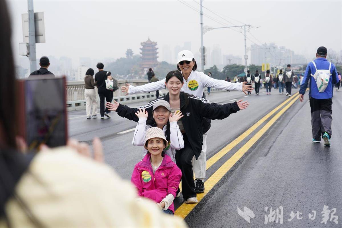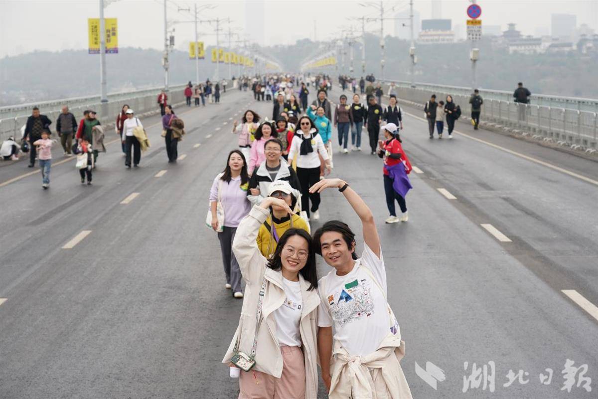 队伍中既有结伴而来的夫妻和好友,也有举家出动的亲子家庭,大家一路打卡、一路留影,在桥头远眺两江四岸,感受春日江城独有的壮阔与浪漫。