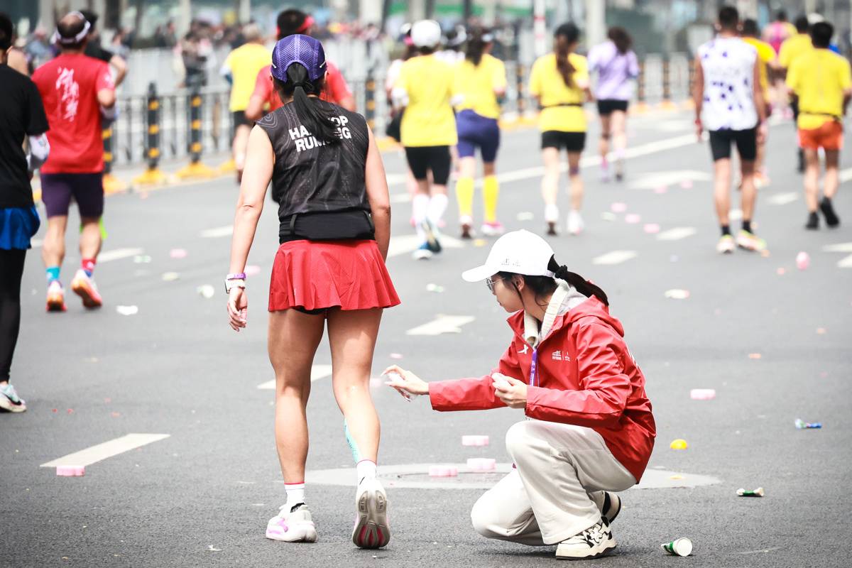 凌晨时分,他们便告别梦乡,提前抵达岗位,从补给站的精准递水,到医疗点的协助值守,从赛道旁的方向引导,到对特殊跑者的贴心陪伴,分工明确、忙而有序。“小葫芦”志愿者们凌晨出征,助跑志愿者放弃个人成绩守护残障跑者,许多人嗓音沙哑仍坚守呐喊,用行动诠释“奉献、友爱、互助、进步”的志愿精神。