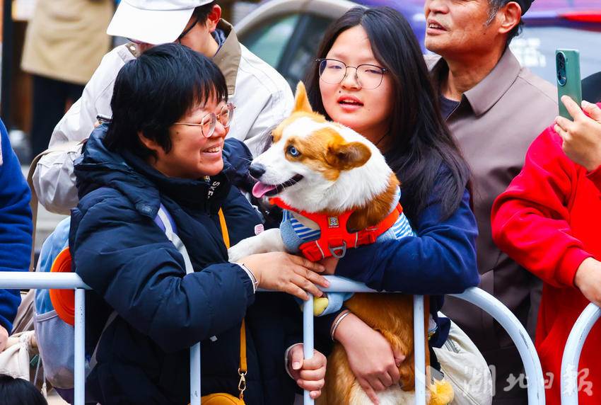 3月22日,市民带着宠物为参赛选手加油。(湖北日报全媒记者 柯皓 摄)