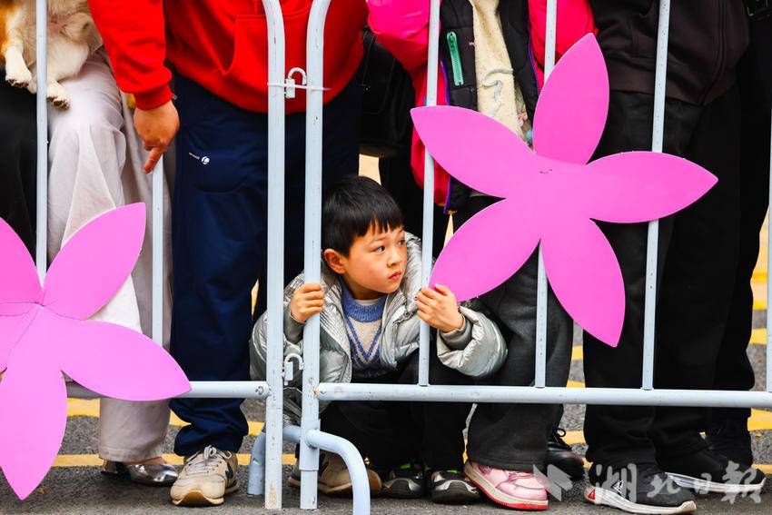 3月22日,小朋友为参赛选手加油。(湖北日报全媒记者 柯皓 摄)