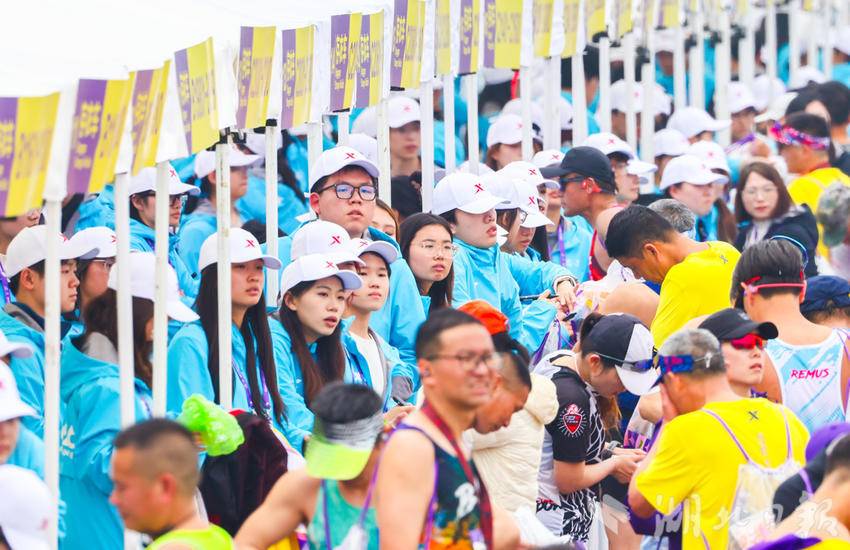 3月22日,志愿者在终点为选手们服务。(湖北日报全媒记者 柯皓 摄)