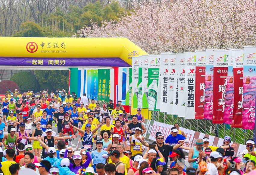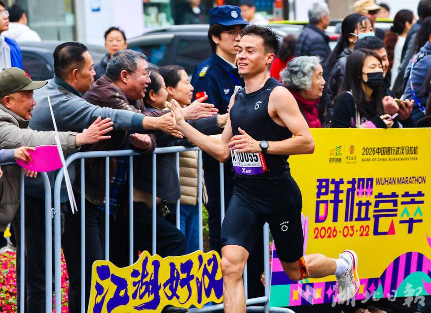 3月22日,来自世界各地的参赛选手冲过终点。(湖北日报全媒记者 柯皓 摄)