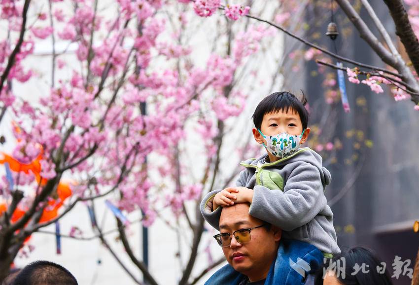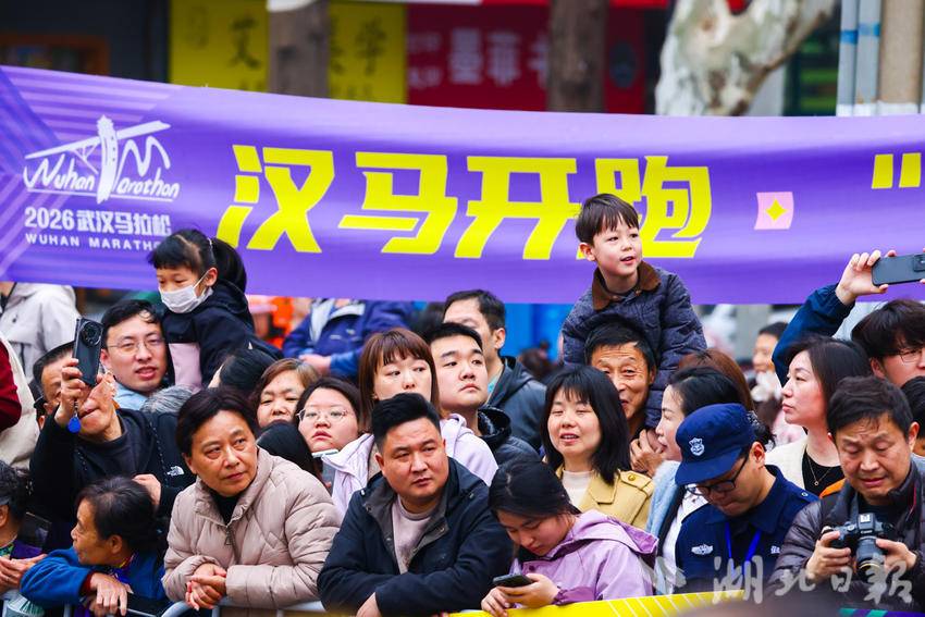 3月22日,小朋友骑在家长肩头为参赛选手加油。(湖北日报全媒记者 柯皓 摄)