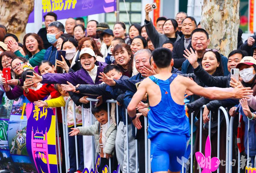 3月22日,赛道旁的志愿者和市民为参赛选手呐喊助威。(湖北日报全媒记者 柯皓 摄)