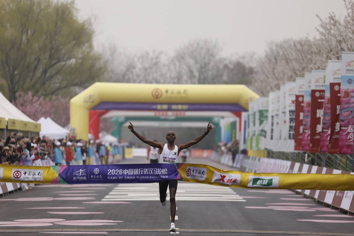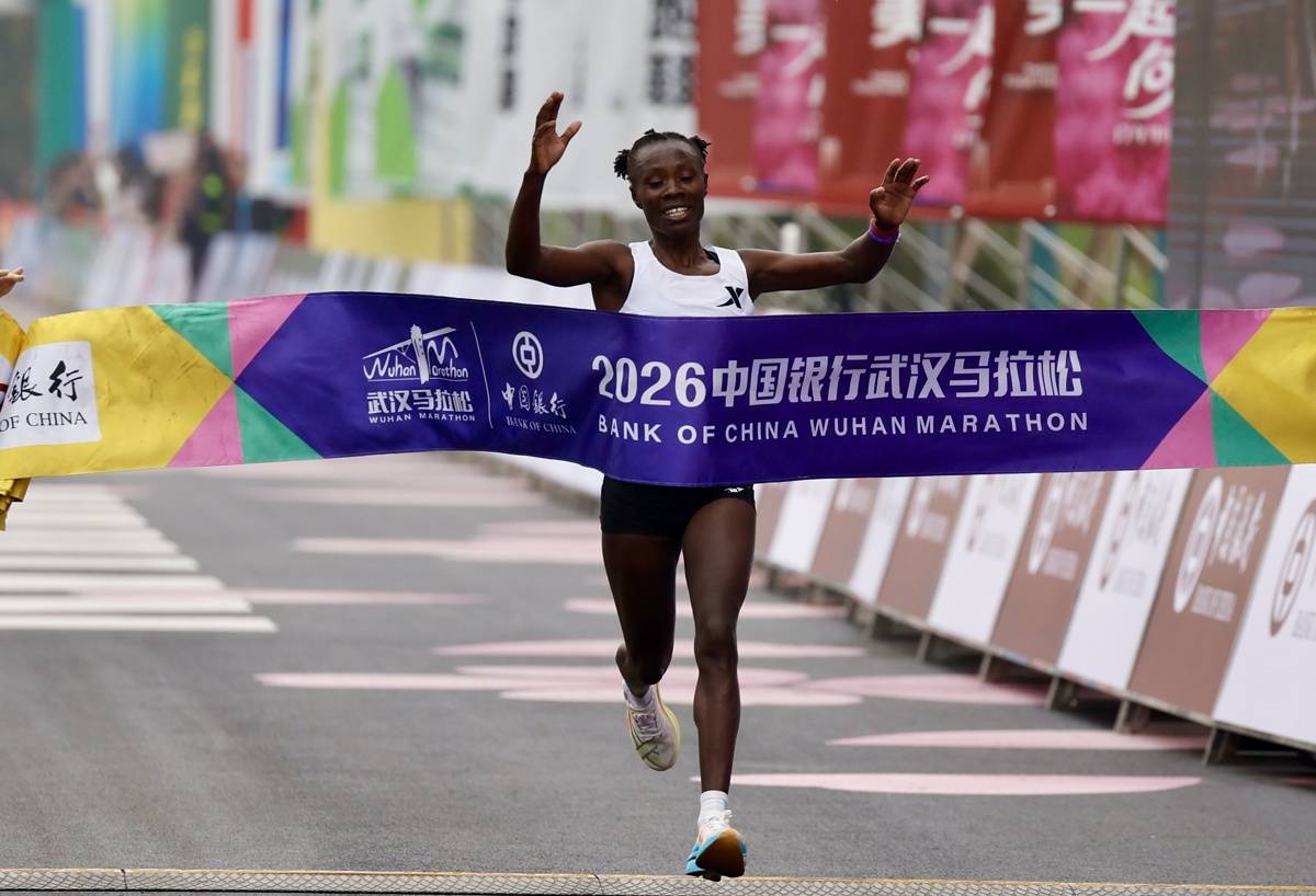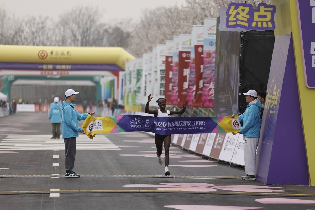 2026年3月22日,2026年武汉马拉松顺利举行,吸引了约3万名跑者参与。来自肯尼亚的选手约翰·姆布鲁·穆鲁里以2小时10分16秒夺得男子全程冠军,其同胞维罗妮卡·恩杰里·迈纳以2小时24分15秒获得女子全程冠军。(湖北日报全媒记者 倪娜 摄)