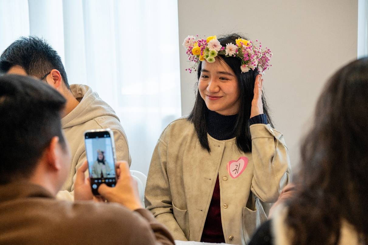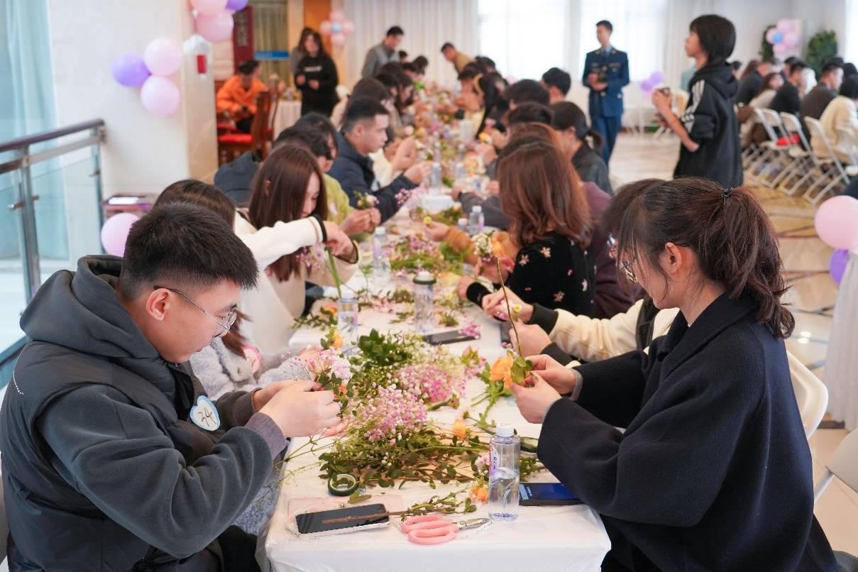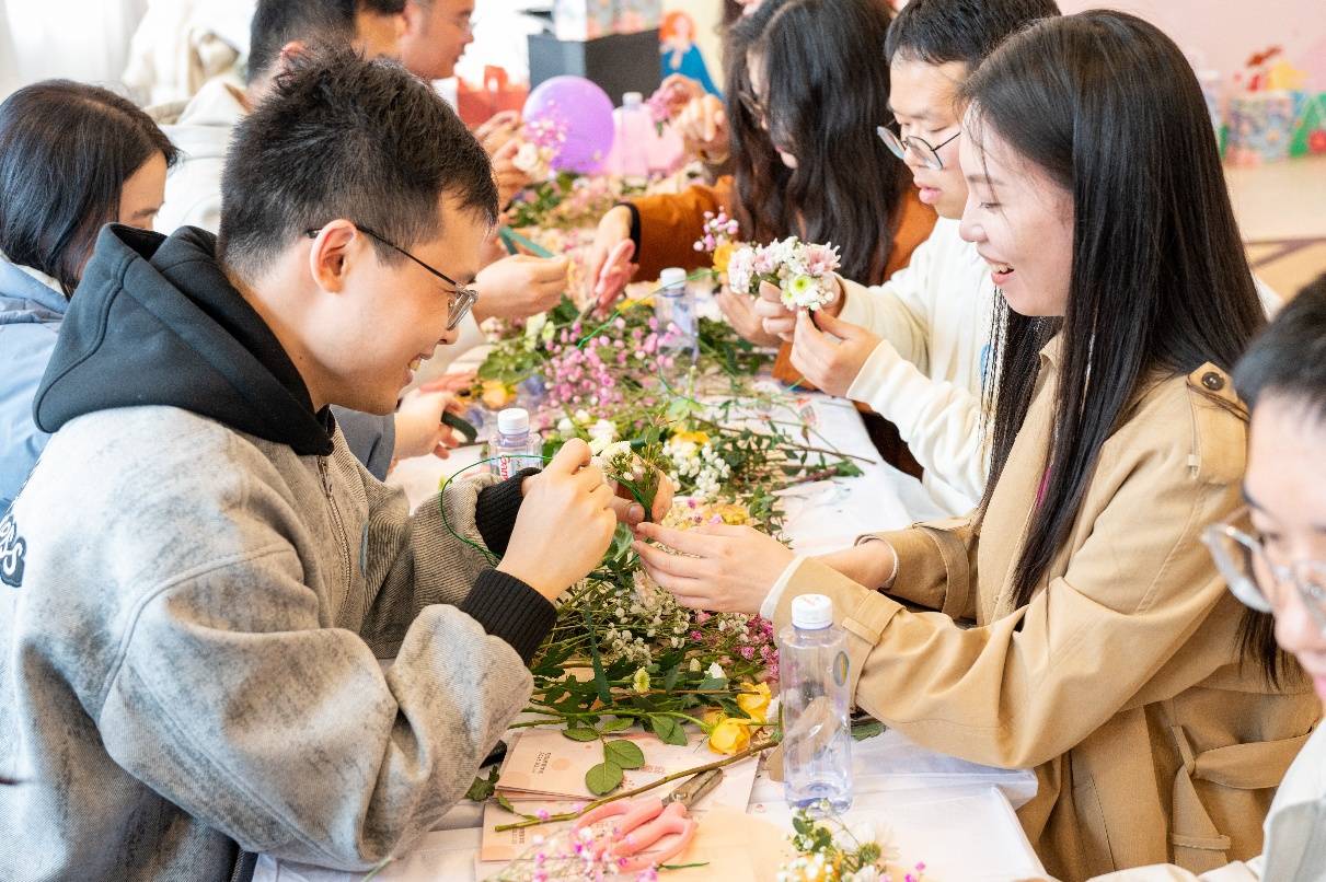 活动现场温馨有序,破冰游戏、两人三足、双人投壶等互动环节,有效拉近了青年距离,增进了彼此了解与默契。在压轴的共编花环活动中,大家携手创作,以花为媒,共话美好。