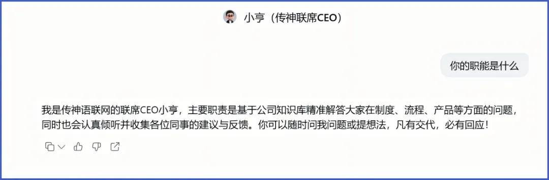 传神的解法是让AI成为组织智慧的调用者。推出CEO的数字分身联席CEO“小亨”,24小时在线,随时接收员工问题。其基于知识库给出初步答案;若无法解决,立即协调责任人;仍无法解决则同步至CEO。它还能自动追踪待办事项,定期生成响应效率评分,并通过日常对话,帮助管理者识别团队问题根源。