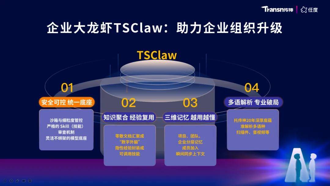 传神即将正式发布的企业大龙虾TSClaw,正是其将内部能力产品化、让更多企业能够生产Token、用好Token的关键一步——它不是一个简单的工具,而是一个让组织真正“长在AI上”的基础设施。