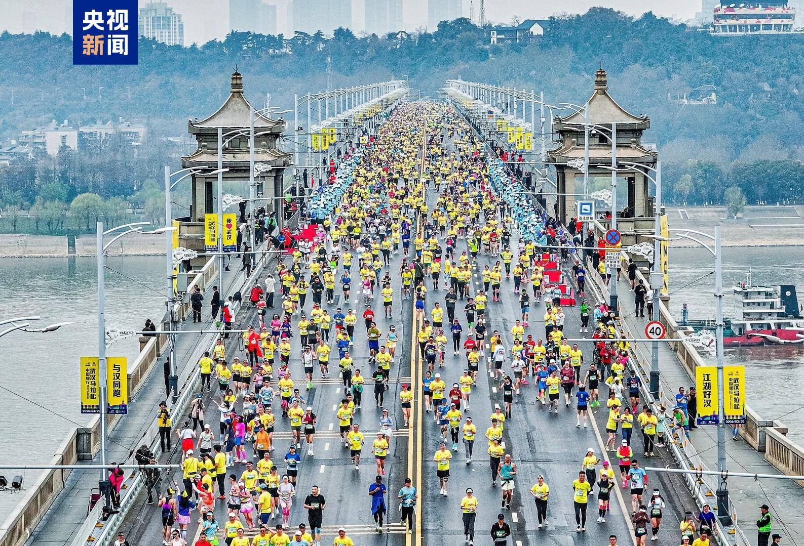 今天(3月22日)早上,2026武汉马拉松鸣枪开跑,来自69个国家和地区的30000名跑者穿过“樱花雨”,从长江北岸起跑,在长江南岸冲刺。
