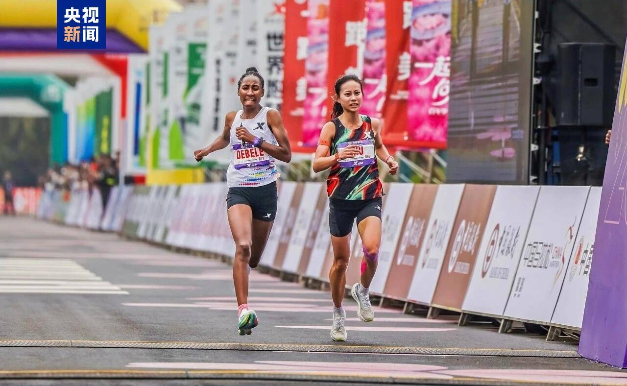 中国名将何杰以2小时10分56秒的成绩冲线,中国运动员朱卿以2小时28分45秒完赛,两人分获男子、女子组第四名。