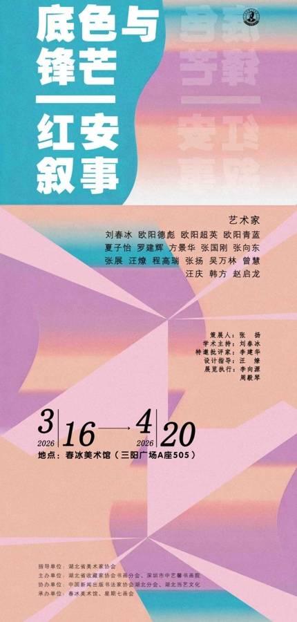 湖北日报讯(记者农新瑜、通讯员赵启龙)3月21日,“底色与锋芒——红安叙事”艺术展在位于汉口的春冰美术馆举行开幕式。本次展览由湖北省美术家协会指导,湖北省收藏家协会书画分会与深圳市中艺馨书画院共同主办,展览将持续至4月20日。