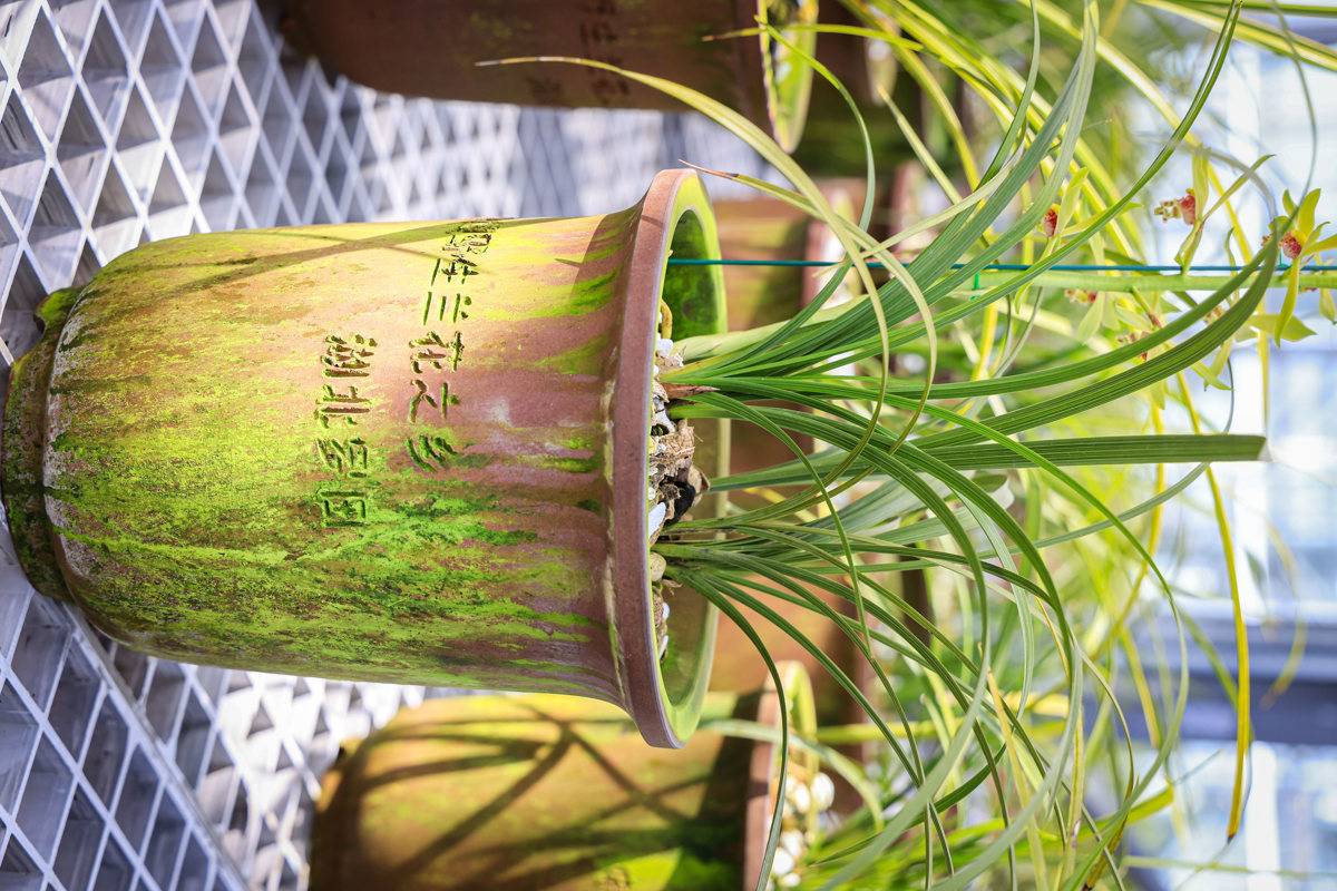 “中国野生兰花之乡 湖北罗田”字样被印上了花盆。(湖北日报全媒记者 成熔兴 通讯员 陈钦 摄)