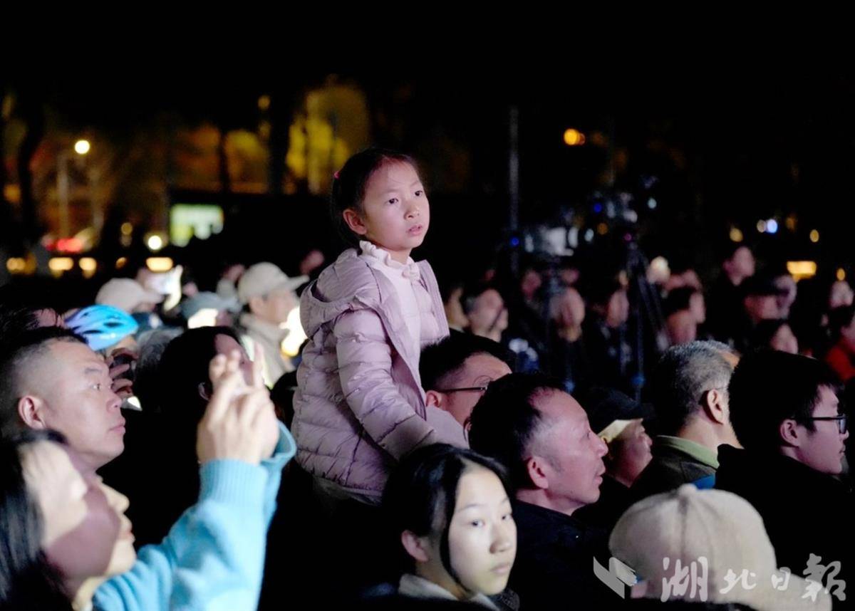 正值赏樱时节,当晚西北湖畔游人如织,观看演出的观众将现场围得里三层外三层,舞台两侧也挤满了人。现场气氛热烈,掌声如潮。有观众点赞:“花美,歌好听,武汉的春天,氛围感真是拉满了。”