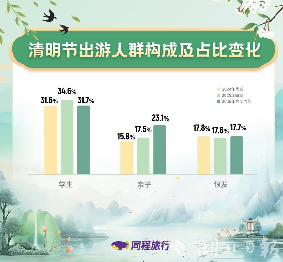 湖北日报讯(记者王理略、通讯员吴秀娟)春假与清明假期衔接,全国多地迎来超长连休。日前,湖北多地也公布2026年春假安排,共同催生火热“清明黄金周”。同程旅行数据显示,截至3月23日,4月1日至6日假期里,机票、酒店民宿、景区门票等预订热度同比接近翻倍,长线游、出境游、赏花寻味全面升温。