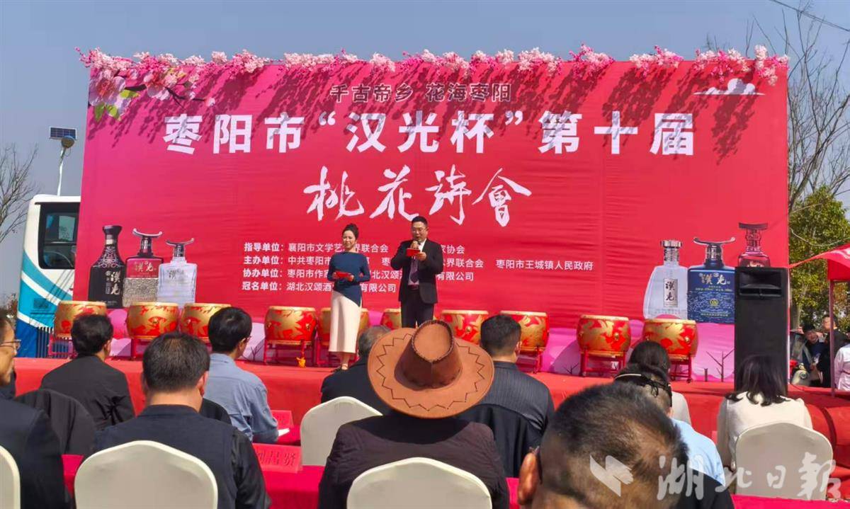 湖北日报讯(通讯员唐齐武、童曙明)春风送暖,桃花盛放;诗韵飞扬,汉风绵长。3月21日,湖北枣阳市“汉光杯”第十届桃花诗会在王城镇古岭村举行。活动以诗歌为纽带、以桃花为媒介,深度融合枣阳桃文化与汉文化特色,以文艺力量赋能全域旅游与乡村振兴,为城市发展注入了浓郁的文化活力。