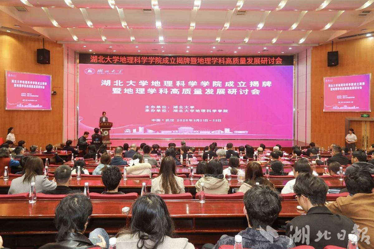 湖北日报讯(通讯员吴珊)22日,湖北大学地理科学学院成立揭牌暨地理学科高质量发展研讨会在该校会议中心举行。湖北大学校长刘建平与中国地理学会党委副书记张国友研究员共同为学院揭牌,标志着学校优化学科生态、服务区域发展迈出关键一步。