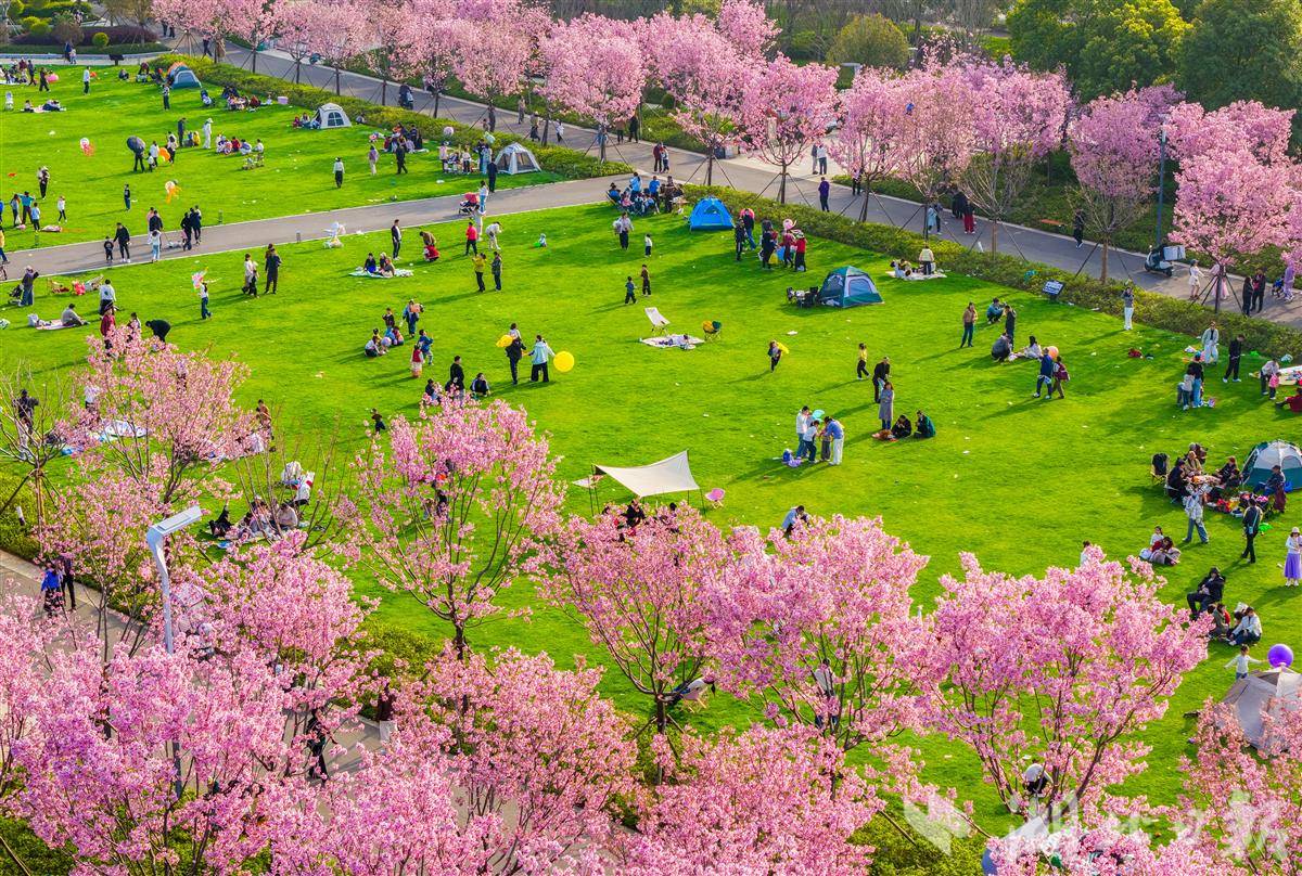 3月22日,黄石经开区黄石奥体公园花客厅樱花大道如梦似幻,千株粉色阳光樱花盛放,如云似霞,成团成簇。众多市民携亲带友到此,共赴一场春日浪漫盛宴。
