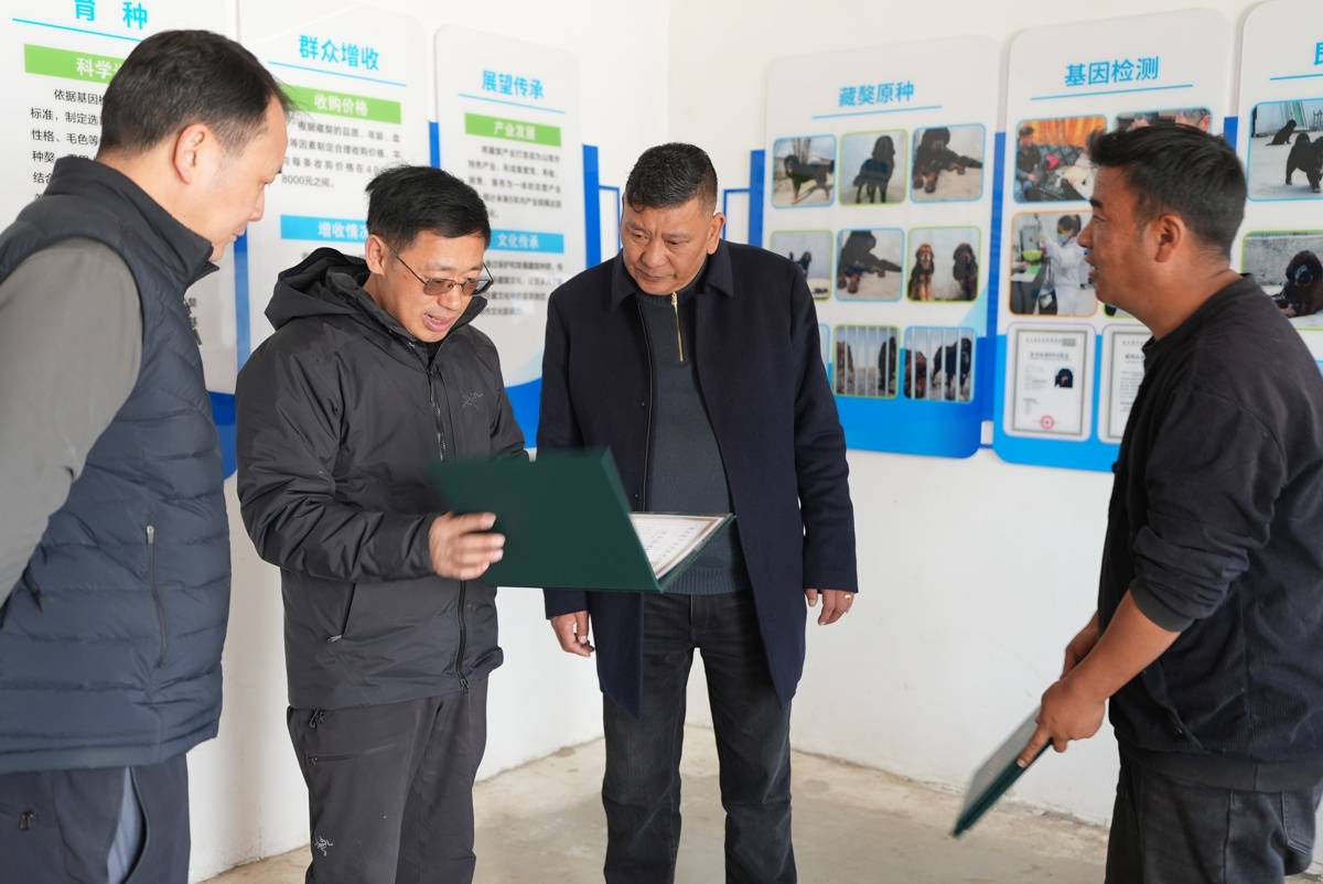 他指出,藏獒不仅是珍贵的畜牧遗传资源,也承载着深厚的民族文化记忆。对藏獒进行科学保护与繁育,对于维护生物多样性、传承优秀民族文化、提升牧民生产效益、服务文旅产业,以及探索高原特色养殖新路径,都具有重要而深远的意义。他要求基地进一步深化科学研究,积极探索文化与产业融合发展的创新模式。