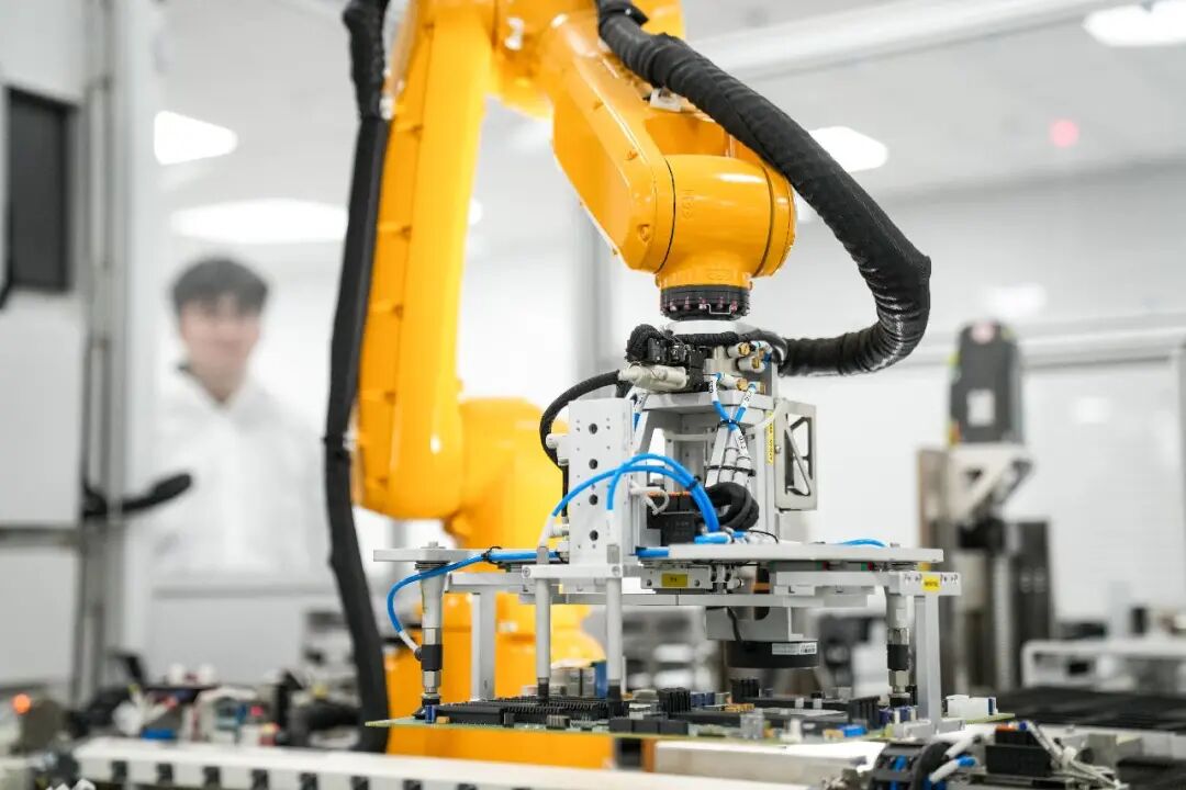 浙江省金华市金义新区浙江超越芯控技术有限公司国产化服务器智能制造基地,智能生产线高速运转,机械臂精准完成零部件组装、检测、封装全流程。黄文龙摄(人民视觉)