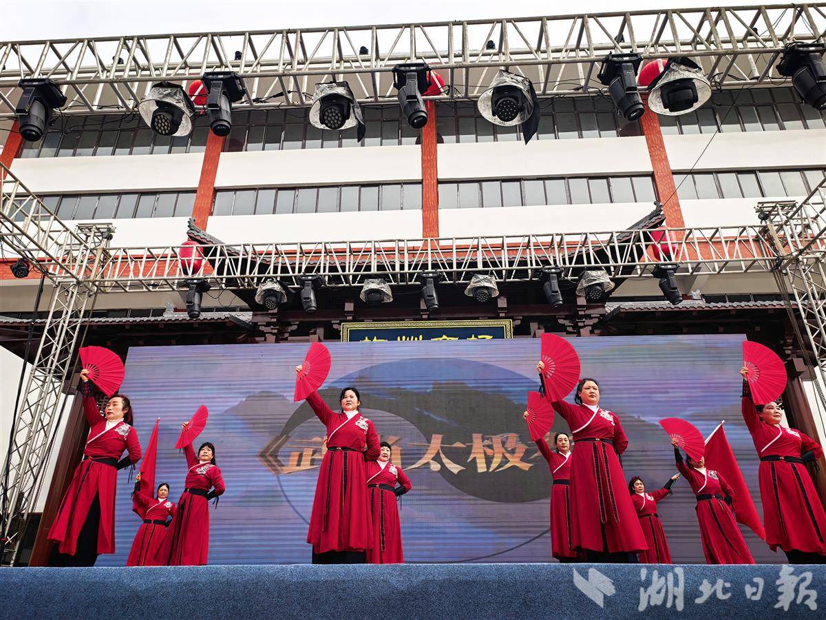 10余个节目精彩纷呈、兼具武当特色与健身价值。从舒缓养身、调和气血的八段锦,到经典基础、普及广泛的24式简化太极拳,再到韵味醇厚的武当太极拳九式、灵动飘逸的太乙游龙拳,更有刚柔相济的太极扇、太极剑,以及刚劲有力的传统刀术与枪术轮番上演。台上台下同步联动,爱好者们身姿舒展、招式行云流水,将武当太极动静相生、虚实结合、刚柔并济的独特神韵演绎得淋漓尽致,既彰显了武当武术“内外兼修、道法自然”的核心特质,也展现出丹江口市群众热爱运动、乐观向上、积极健康的精神风貌,引得现场掌声、喝彩声不断。