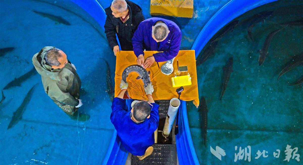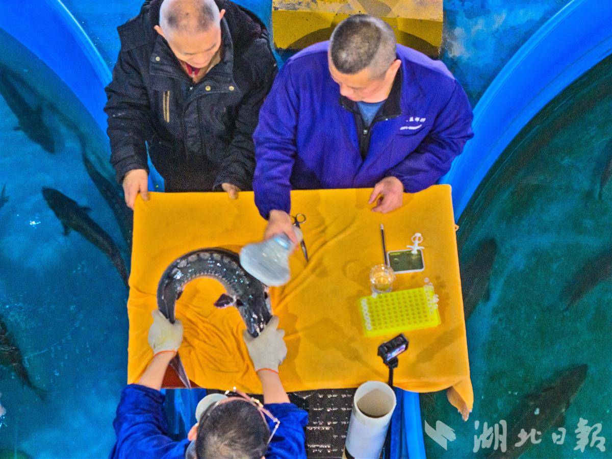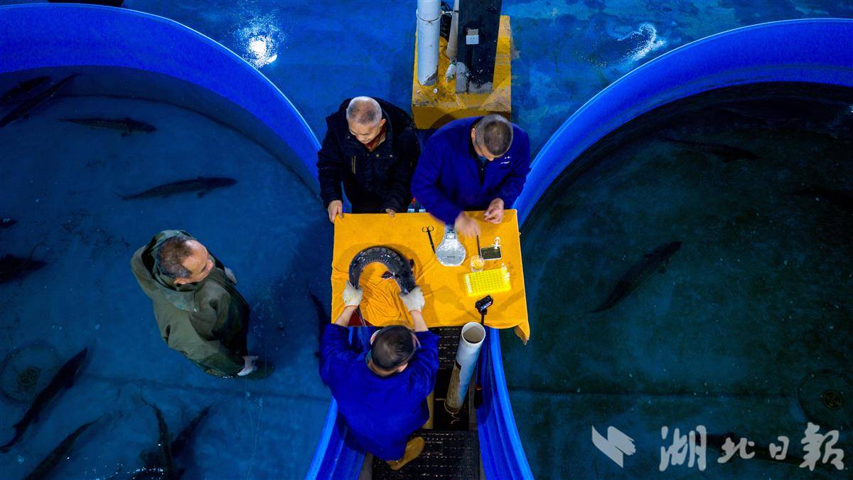 放流前,中心技术人员严格按照操作规程,对即将回归长江的中华鲟子二代个体进行采样,同时打PIT标记,相当于给它们颁发了独一无二的 “电子身份证”,为后续追踪洄游规律、监测生存状况、评估放流效果提供关键数据支撑,让每一条回家的中华鲟都能被精准守护、全程可溯。(湖北日报全媒记者 刘曙松 摄)