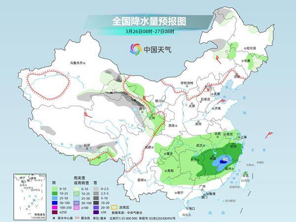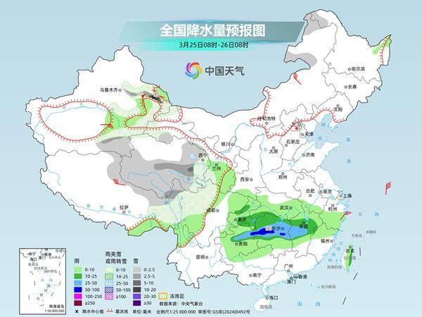 未来三天(3月24日至26日),南方多地阴雨天气持续,而且月底还将有一轮较强降雨过程,需防范连续降雨对交通、农业等方面的不利影响。阴雨影响下,西南到江南等地升温乏力,而北方多地气温将冲高,25日前后达到近期高点,暖如常年4月下旬。