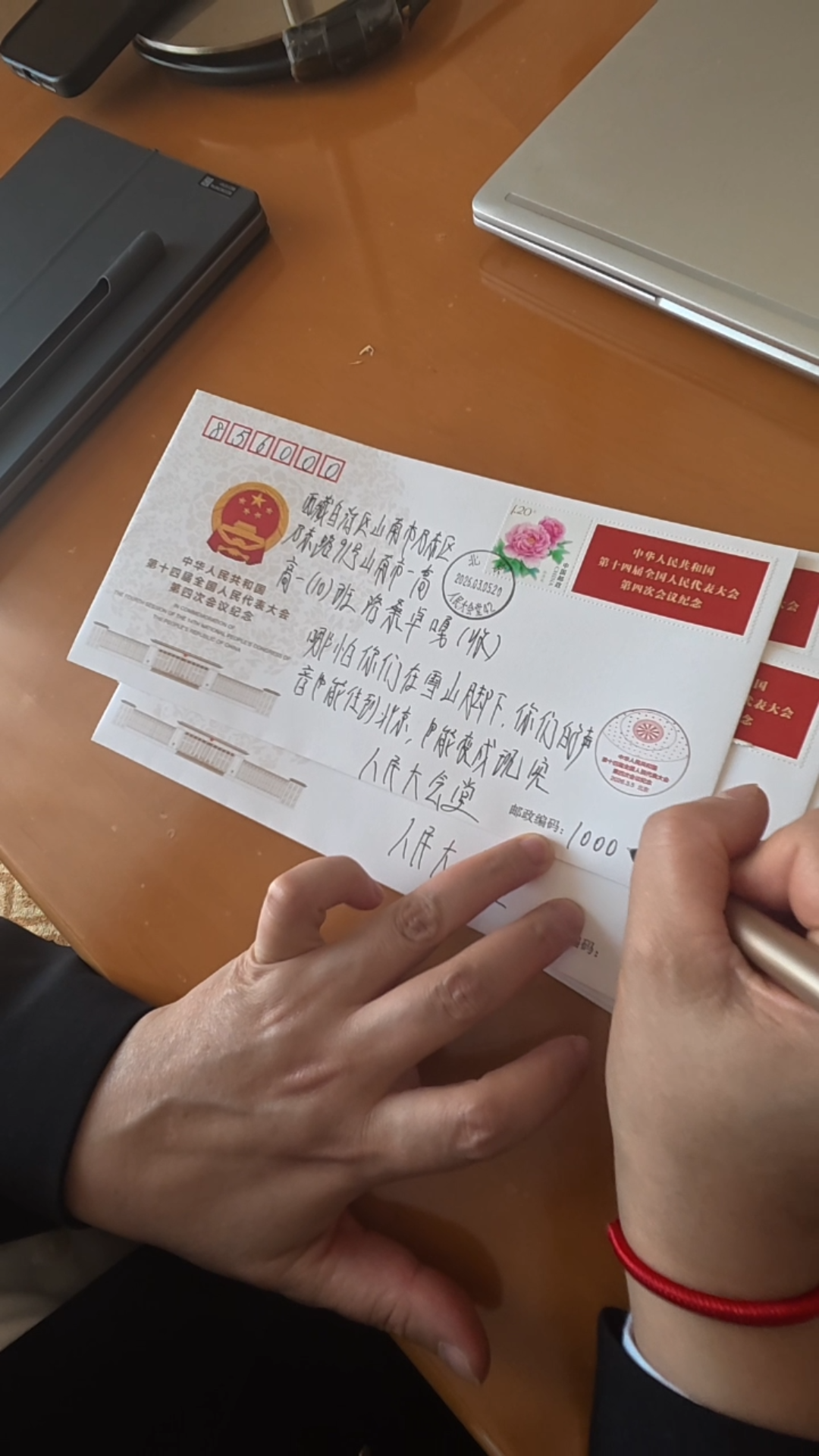 全国两会期间,马丹把印有人民大会堂图案的两会纪念封,寄给西藏的孩子们,把“哪怕你们在雪山脚下,你们的声音也能传到北京,也能变成现实”的信念,送到孩子们手中。