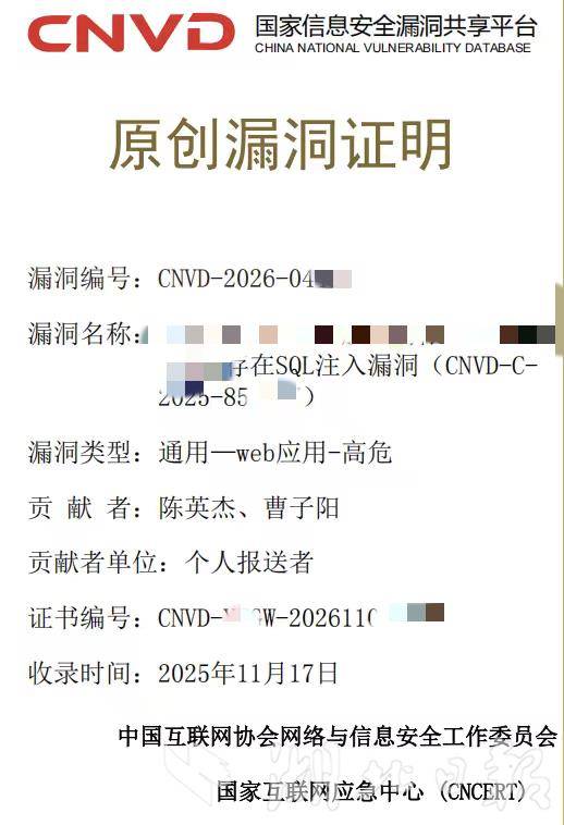 “对在读学生而言,能发现漏洞并提交报告还是很难得的。”该校信息安全技术应用专业教师王亚楠评价,“SQL注入漏洞”是网络安全领域很常见的一种漏洞类型,不少软件在出厂时就携带未检测到的漏洞,专业的网络工程师后续通过网络安全工具也可检测到。