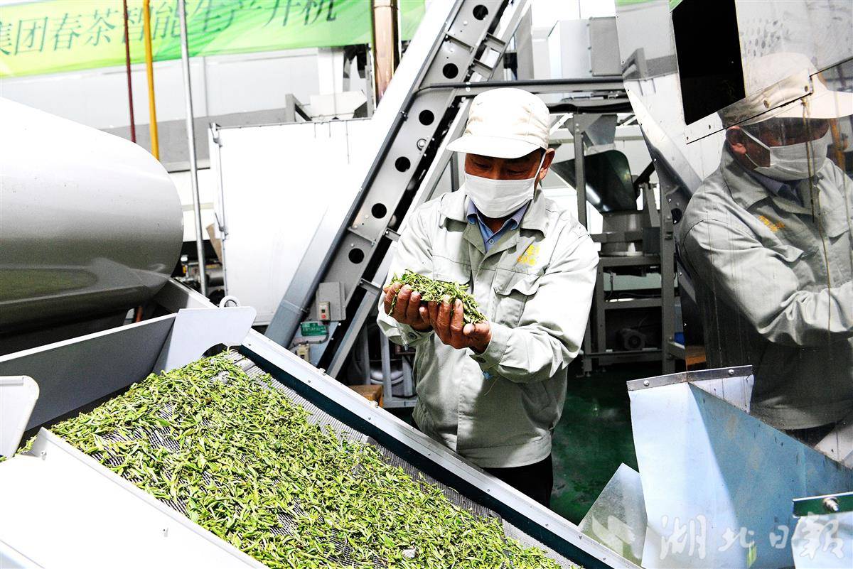 襄阳市保康县茶业集团智能化生产线,工人在赶制春茶抢占市场。(视界网 陈泉霖 邢忆星 摄)