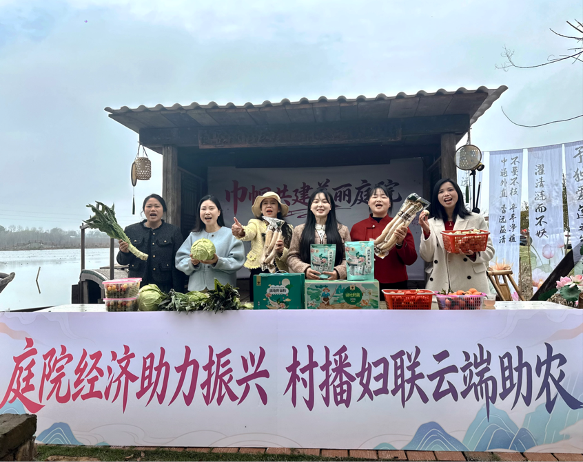 活动中,与会人员首站走进新街镇湖地野藕生态园,实地感受“庭院+直播、手工加工、农旅”融合发展的生动实践。在手工编织培训现场,妇女们巧手翻飞,将传统手艺转化为指尖经济;直播间里,野藕、藕粉等特色农产品通过村播妇联主席的镜头走向全国。这一模式不仅盘活了农家小院,更带动周边妇女实现家门口就业增收,成为“方寸地”变“致富园”的鲜活样本。