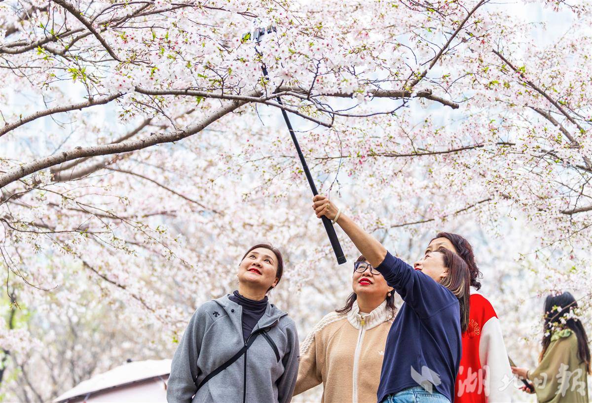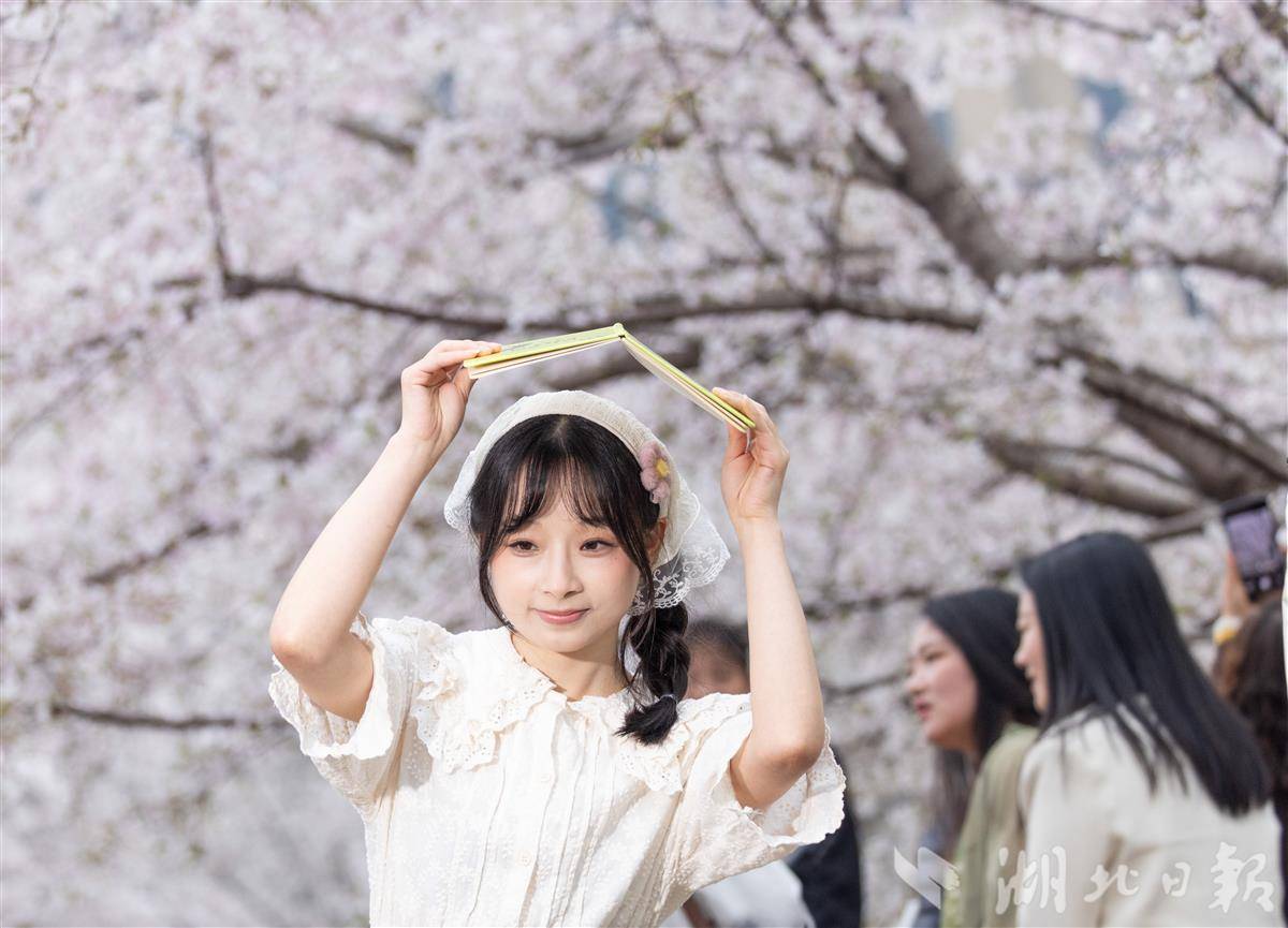 3月24日,武汉西北湖公园樱花进入盛花期,如云似霞,吸引众多游客拍照打卡。本周武汉赏樱季迎来最佳观赏期,满城樱花绘就一幅动人的江城春景图,吸引着省内外游客纷至沓来。(湖北日报全媒记者 薛婷 摄)