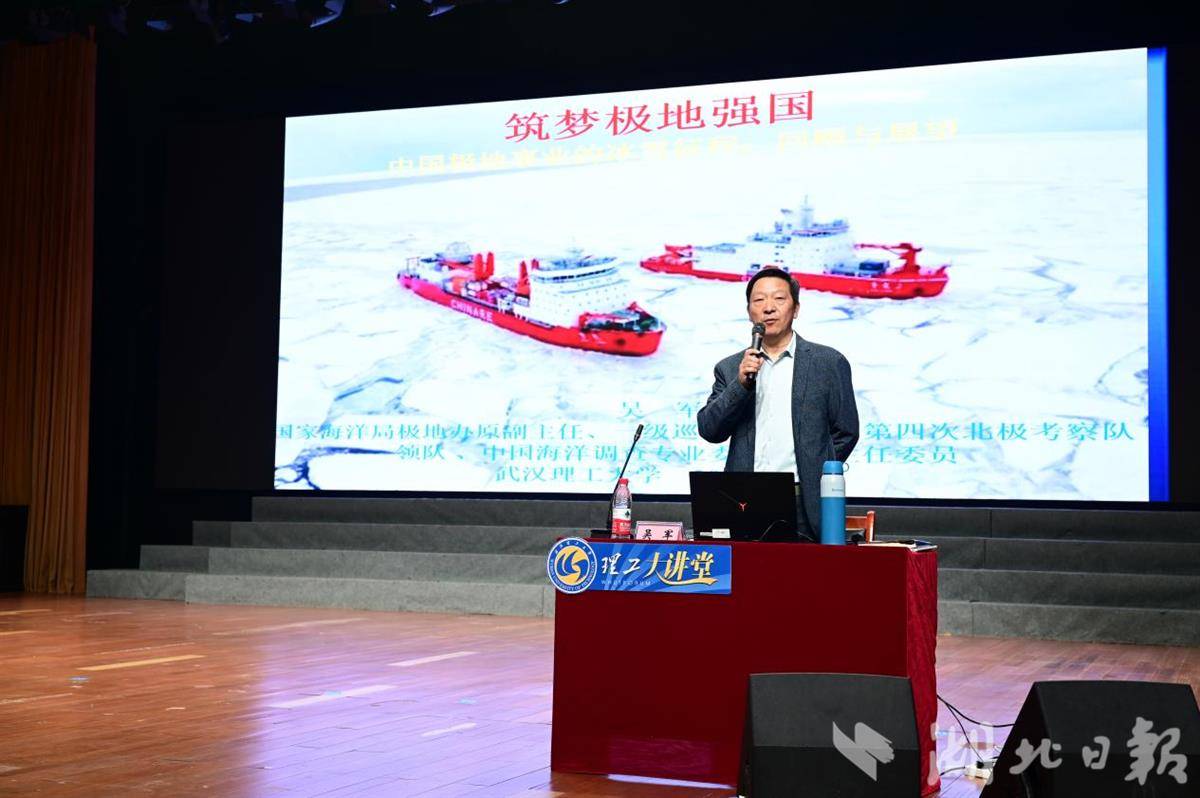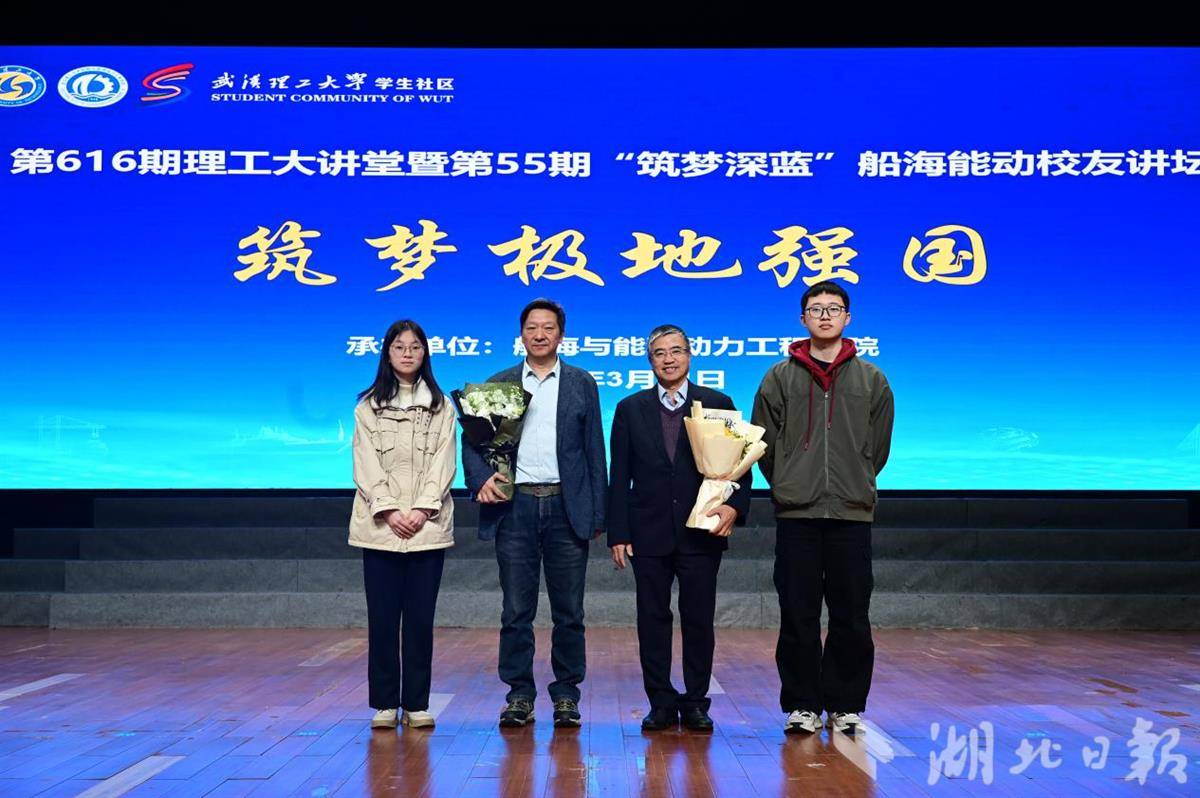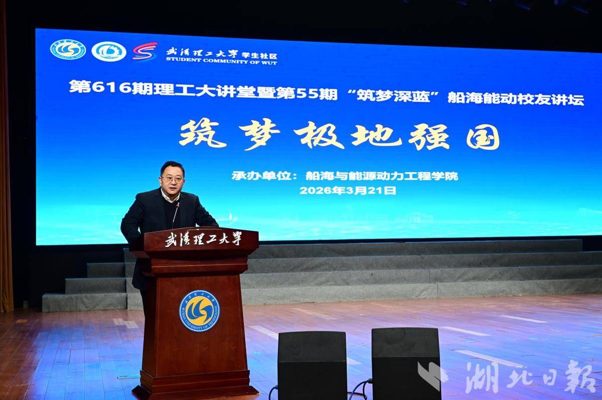 湖北日报讯(记者文俊、通讯员谢欣瑶)3月21日,第616期理工大讲堂暨第55期“筑梦深蓝”船海能动校友讲坛在武汉理工大学余区大礼堂开讲。船海与能源动力工程学院1981级船舶动力专业杰出校友吴军以“筑梦极地强国”为主题,为近千名理工学子带来一堂跨越山海、接续传承的成长课与思政课。