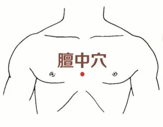 具体做法:以膻中穴为中心,上下左右轻柔按揉60次即可,力度以微酸胀感为宜。