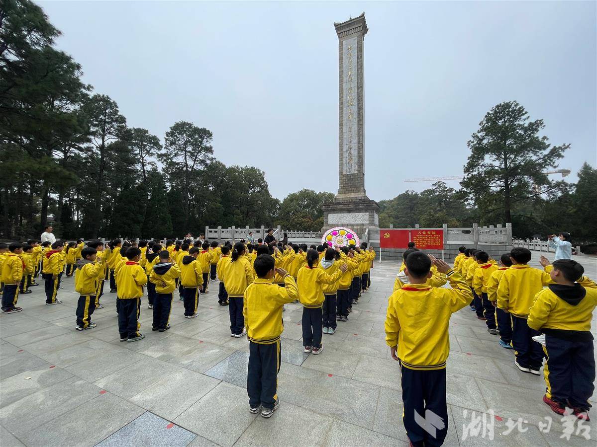湖北日报讯(通讯员熊峰)春回大地,翠柏凝香。3月24日上午,麻城市新星小学126名师生怀揣崇敬之心,走进麻城烈士陵园,向革命先烈敬献花圈,瞻仰烈士纪念碑,祭扫英烈将军墓,在红色热土上开展了一堂沉浸式、生动化的爱国主义教育实践课。