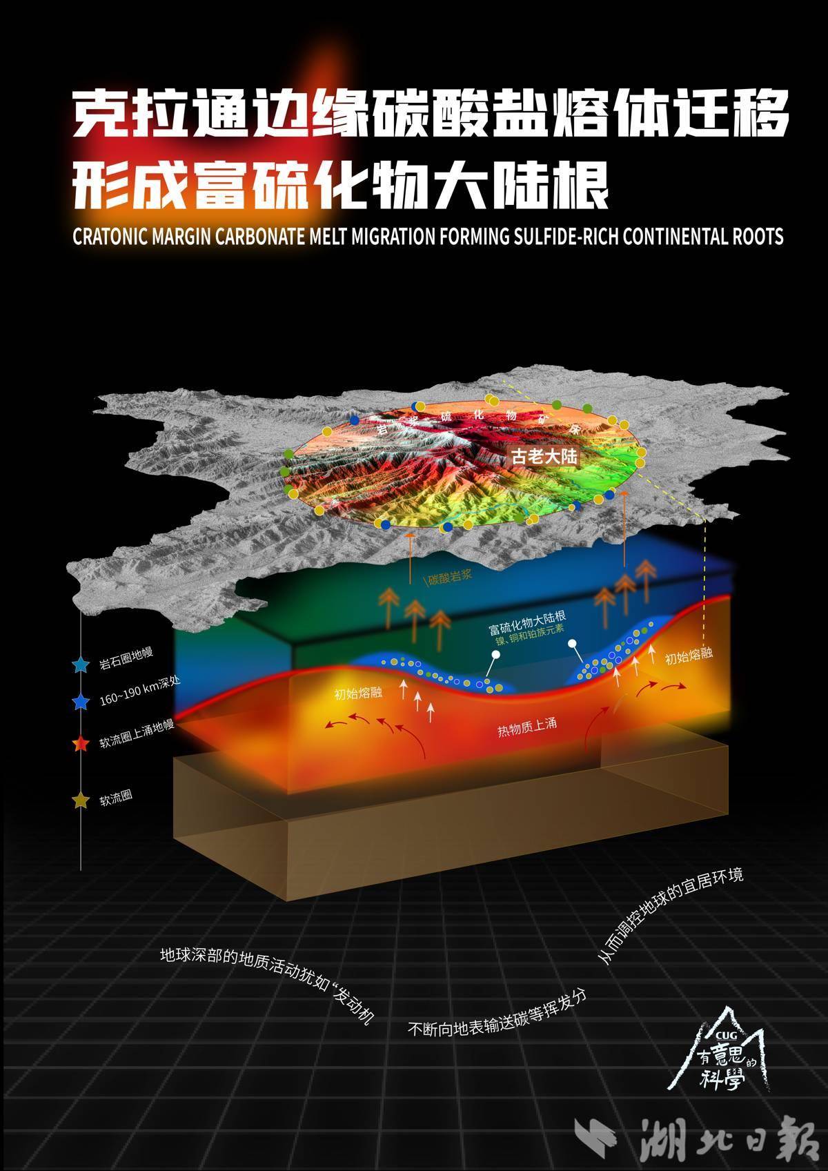 中国地质大学(武汉)陈春飞教授团队通过创新的高温高压实验模拟与大数据的统计分析,首次揭示古老大陆边缘地下160–190公里深处存在铜、镍、铂族金属富集层——“富硫化物大陆根”,提出碳酸岩熔体演化控制金属富集的新机制。创新性建立碳酸岩与硫化物矿床的空间耦合关系和成因联系,发现古老大陆边缘的富碳酸岩区域是关键金属(铜、镍、铂族)矿产富集地。本成果为深地成矿理论提供新视角,为我国关键金属资源勘查与保障资源安全提供重要科学依据,具有重要创新性和战略价值。成果于2025年发表在Nature上。