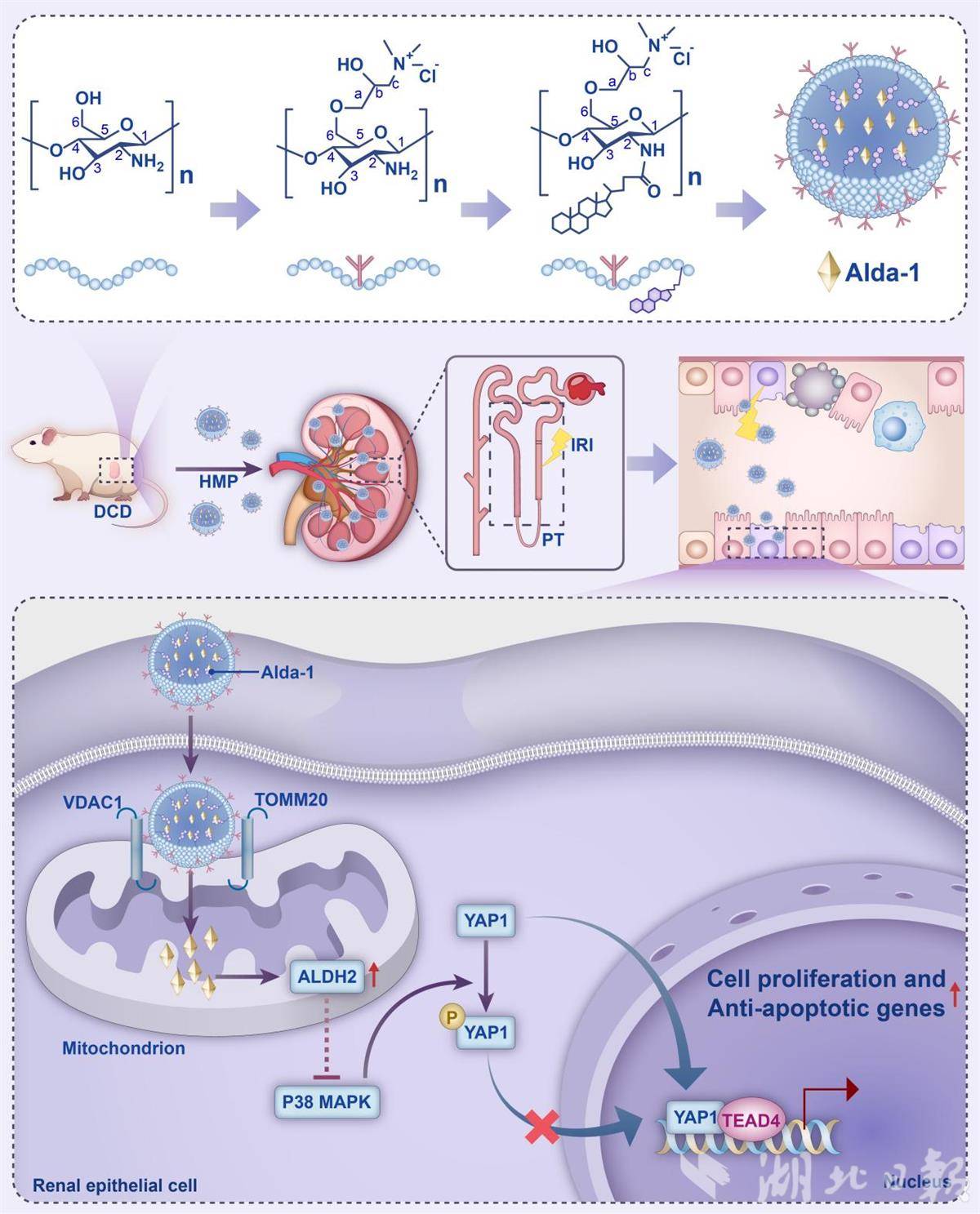 器官移植是治疗终末期肝、肾功能衰竭的最佳治疗手段,供体短缺与器官质量持续优化是提升临床疗效的关键。武汉大学中南医院移植医学中心(叶啟发教授和钟自彪教授团队)和武汉大学资源与环境科学学院(施晓文教授团队)联合研发的新型两亲性壳聚糖季铵盐携载Alda-1纳米复合物(A-NCH),为供体质量优化提供了突破性解决方案。
