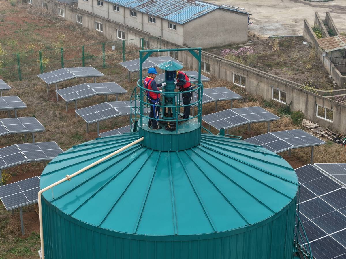 3 月 25 日,国网孝感市孝南区供电公司运维人员对雨坛村 30 千瓦援建沼气发电站开展巡检,保障电站安全稳定运行,让村民用上清洁绿色能源。