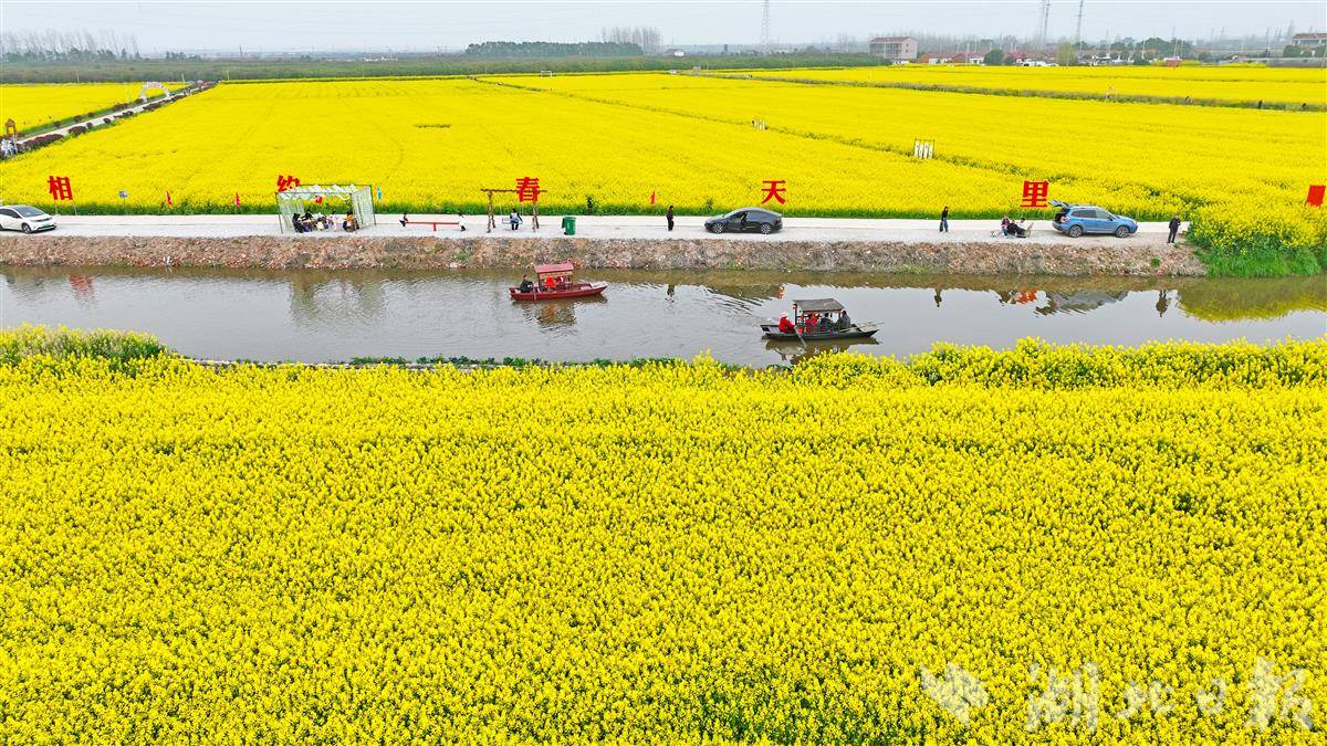 3月22日,武汉市新洲区涨渡湖街道的千亩油菜花海进入盛花期。游客徜徉花海中,或拍照打卡,或悠闲漫步,或乘船游览,沉浸式感受春日的生机与美好。