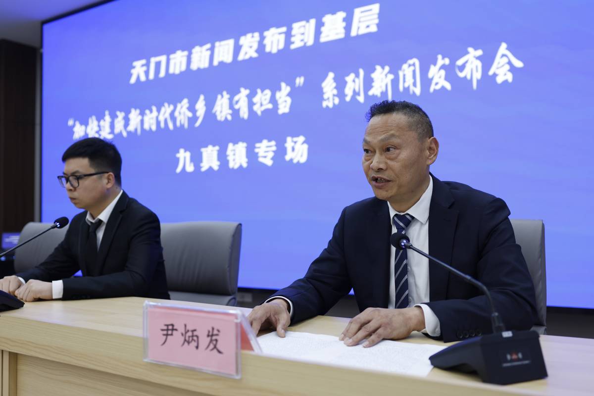 天门市“加快建成新时代侨乡 镇有担当”系列新闻发布会第八场——九真镇专场。(通讯员 张俊 摄)