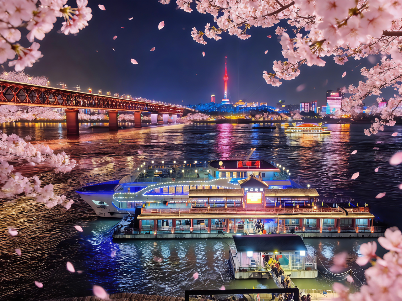 长达3.12公里的樱花带装点武金堤两侧,江风拂过,花瓣飞舞,视野开阔。在这里赏樱,可将长江壮阔与樱花柔美尽收眼底,是江城市民春日休闲的绝佳去处。