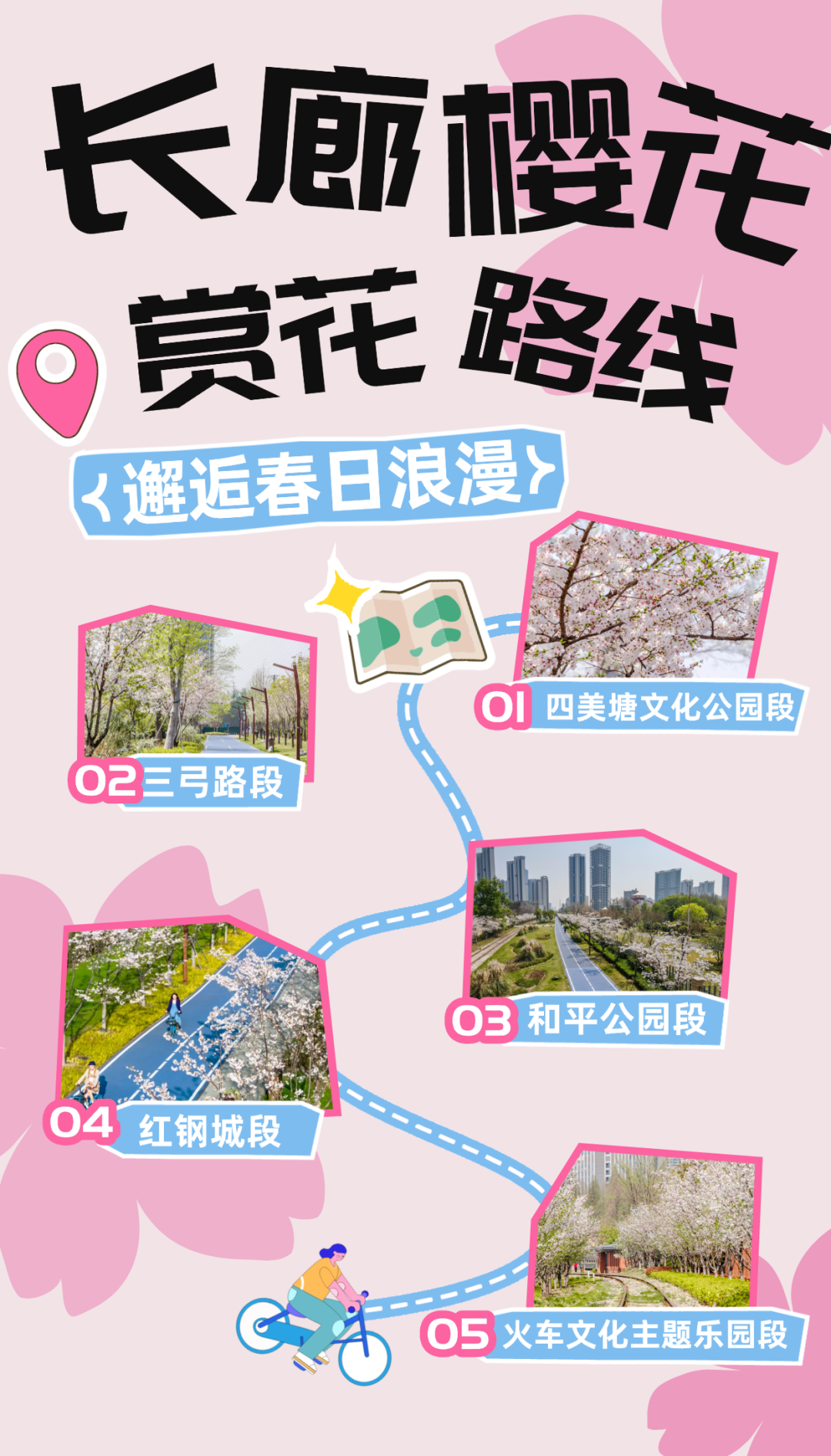 出武汉站即“一路生花”,95株樱花扮靓这条通往城市窗口的必经之路,无论是抵达的游客,还是离家的游子,都能在此邂逅一抹温柔的春意。
