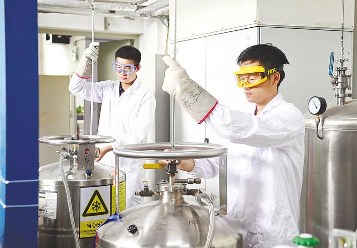 强磁场中心工作人员正在进行液氦传输。(受访对象供图)