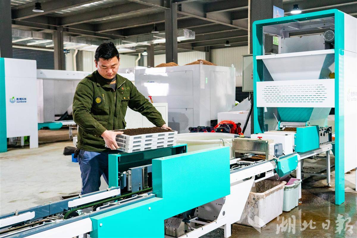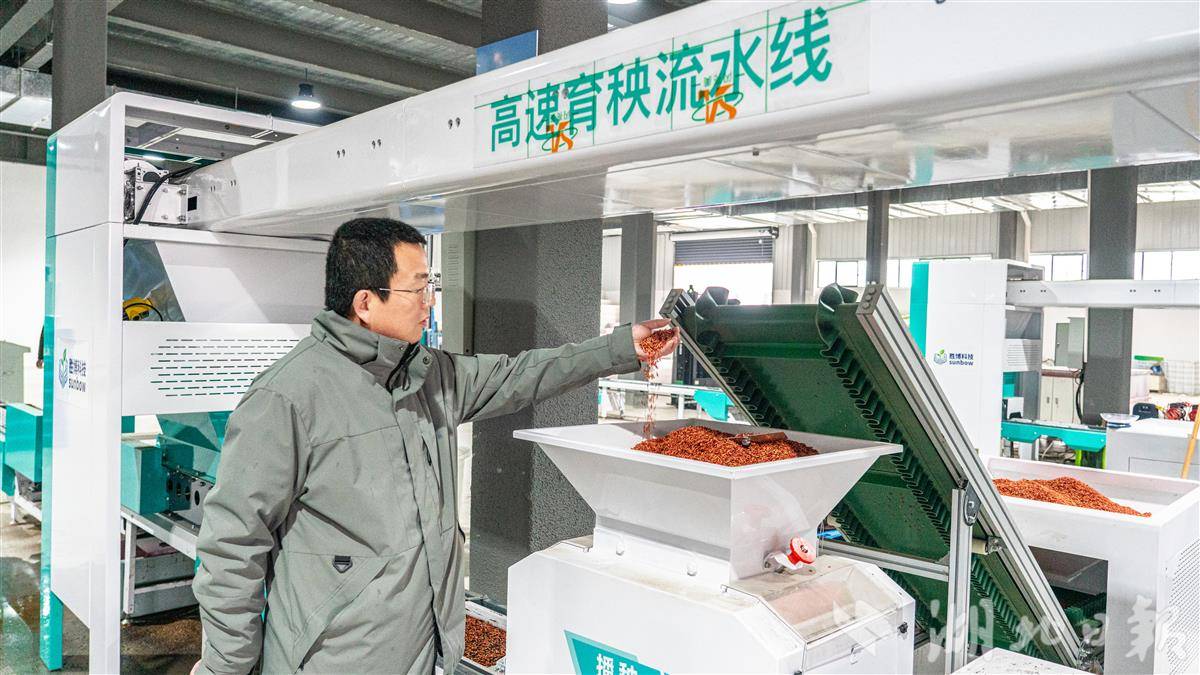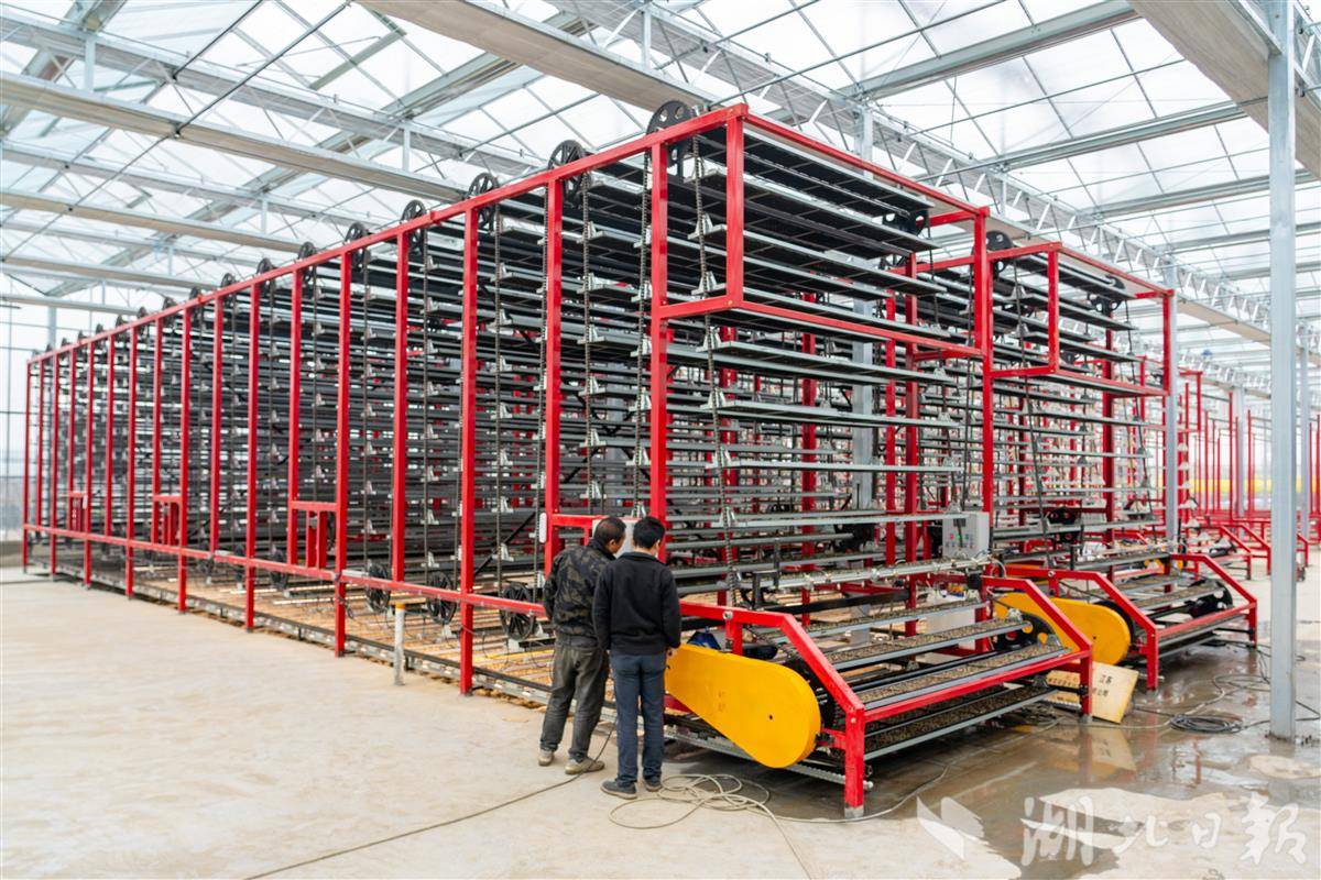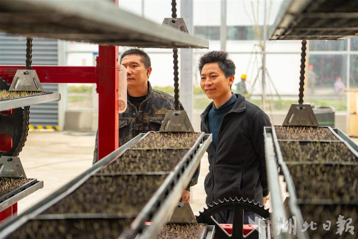 云梦田律农事综合服务中心引进了先进的循环运动式育苗设备。(湖北日报全媒记者 王欣 通讯员 蔡青阳 摄)