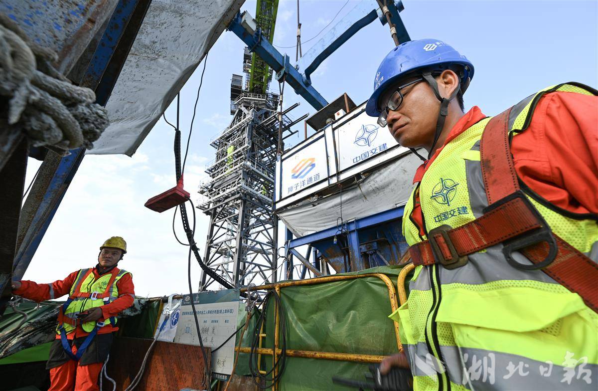 记者发现,浇筑现场静悄悄,几乎没看到工人。谈及此事,曾炜更是如数家珍。原来,作为建桥梦之队,中交二航局在该桥上尝试智能化减人,在粤港澳大湾区贡献湖北建桥方案。“这可是岗位上的新劳模。”他指着比主塔还高的绿色起重机介绍,这是全球最大移动平衡重塔式起重机,其最大起吊重量720吨,相当于可吊起500辆小轿车,配合519种碰撞风险算法,保障极端环境下的毫米级吊装。