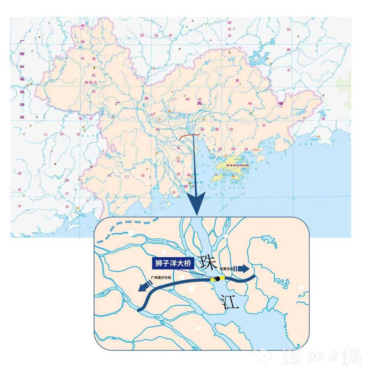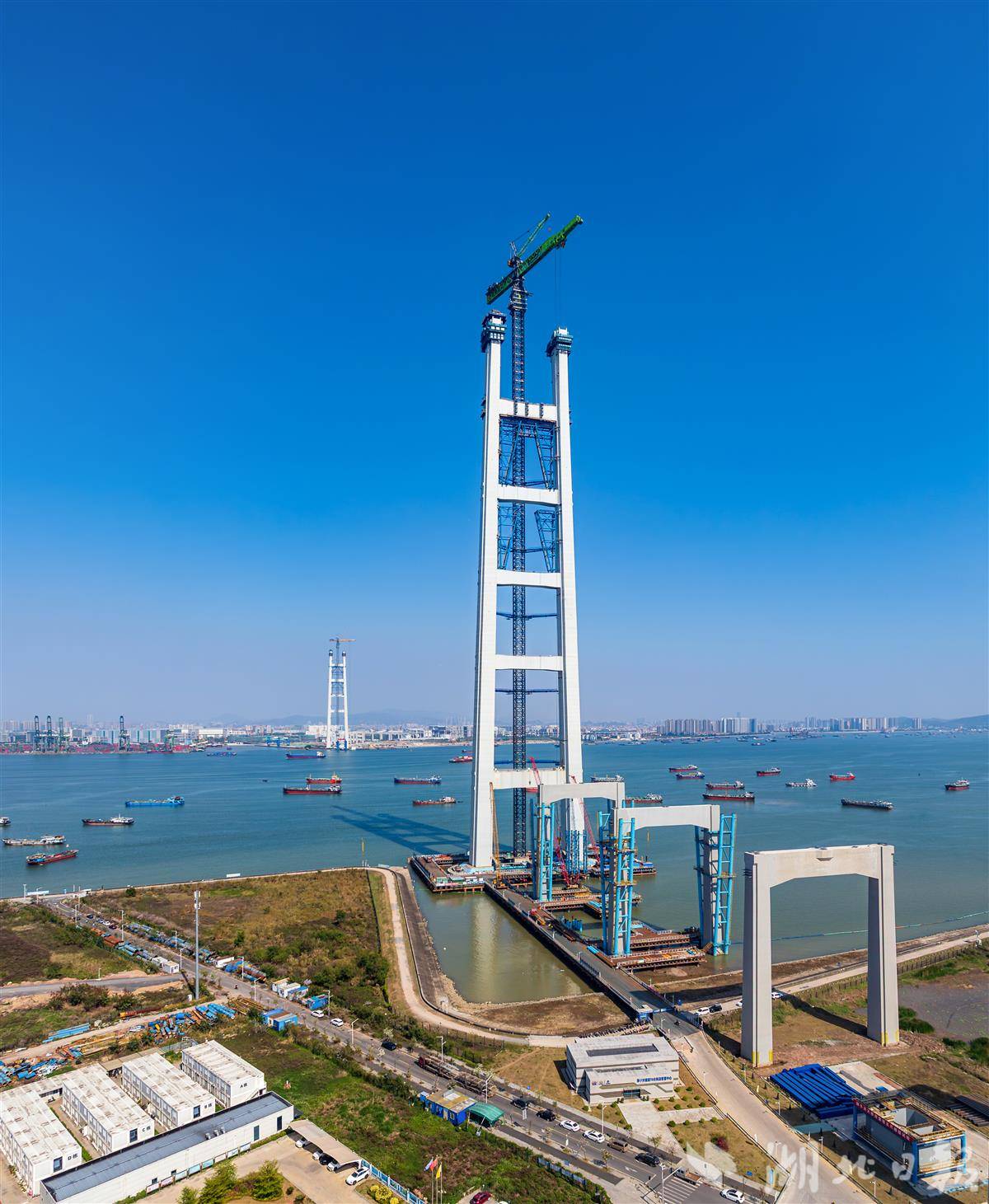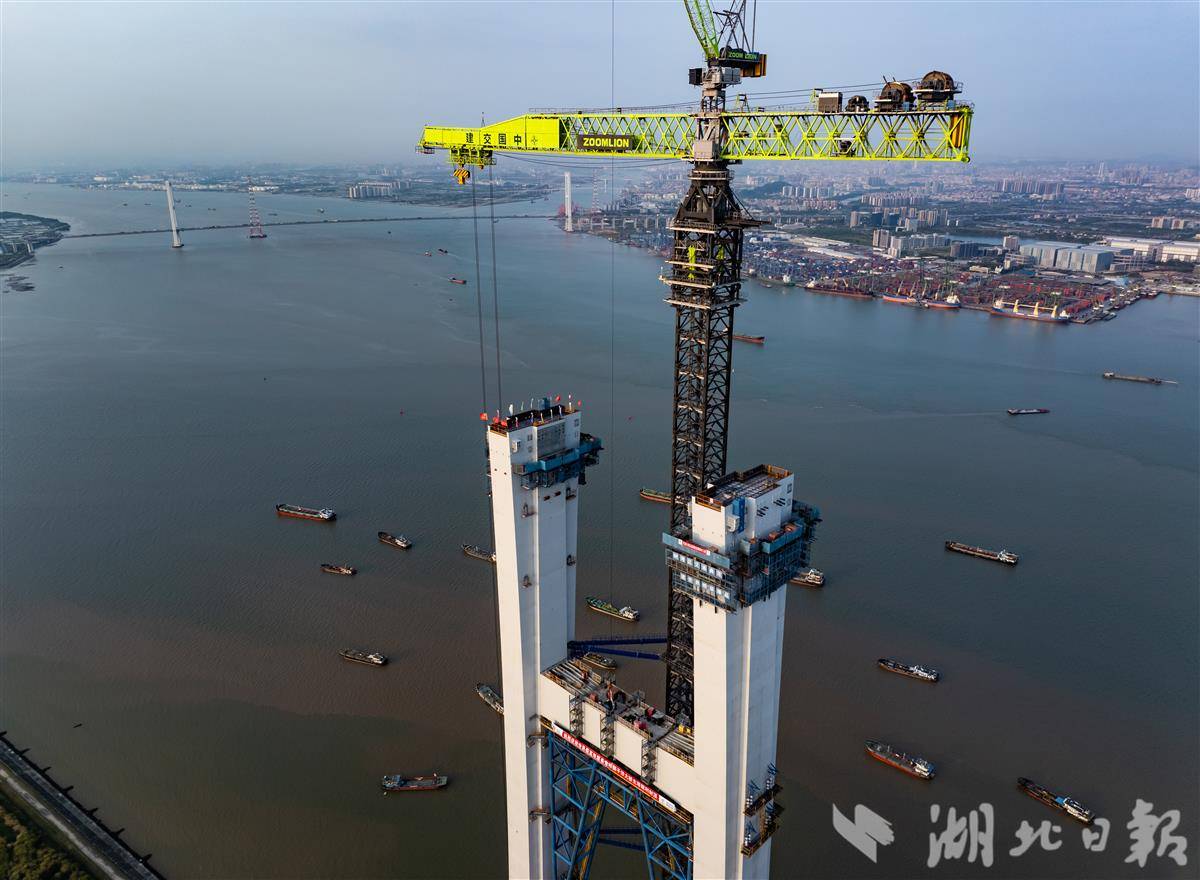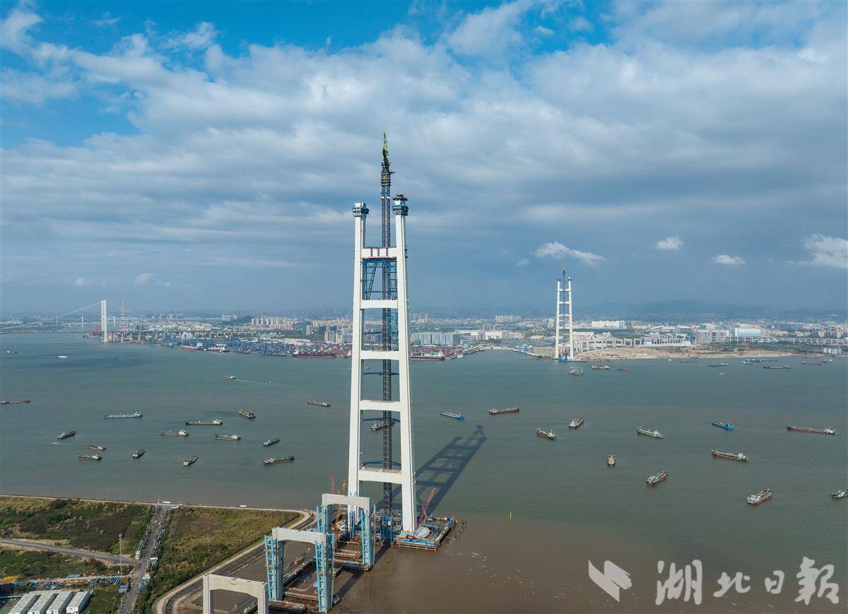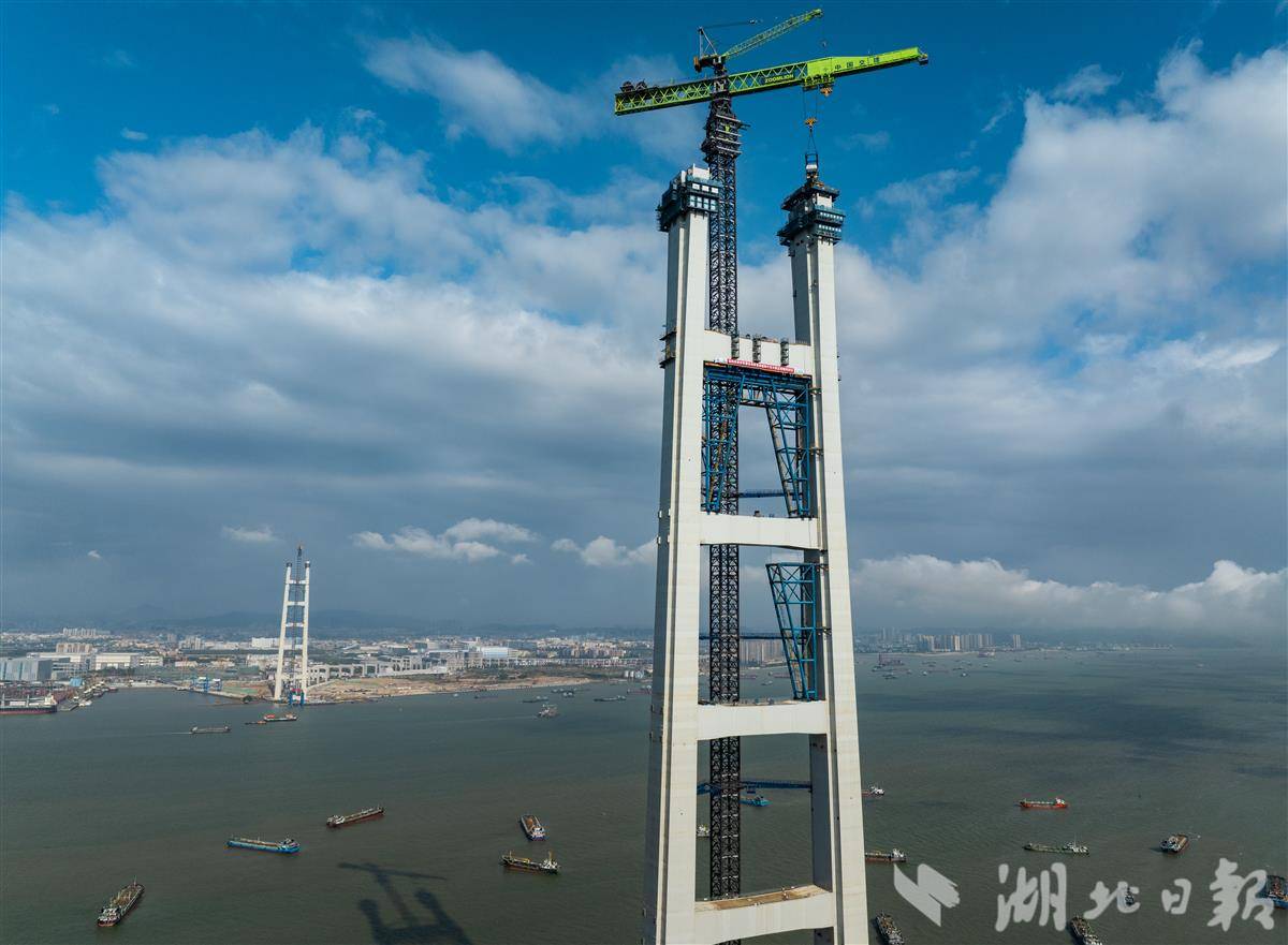 湖北日报讯(记者戴辉、通讯员蒋西米、张政)3月26日11时,粤港澳大湾区核心枢纽工程狮子洋通道迎来重大进展,其关键控制性工程——狮子洋大桥东、西主塔完成封顶,其中342米高的西主塔由在鄂央企中交二航局建造,成为珠江口第一高塔。