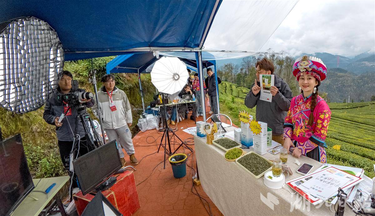 从种植到加工,从运输到上线,一条覆盖全链条的溯源系统正在将“每一片”茶叶的来龙去脉清晰记录。茶农将直播间开在茶园现场。(湖北日报全媒记者 刘曙松 摄)