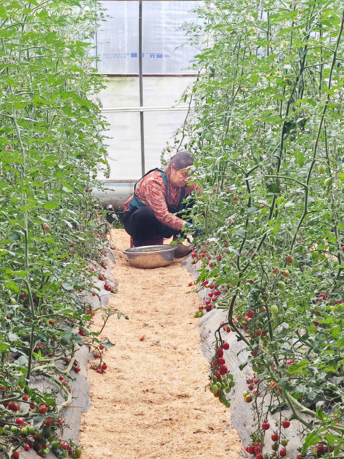 工人正在采摘小番茄。(湖北日报全媒记者彭磊 摄)