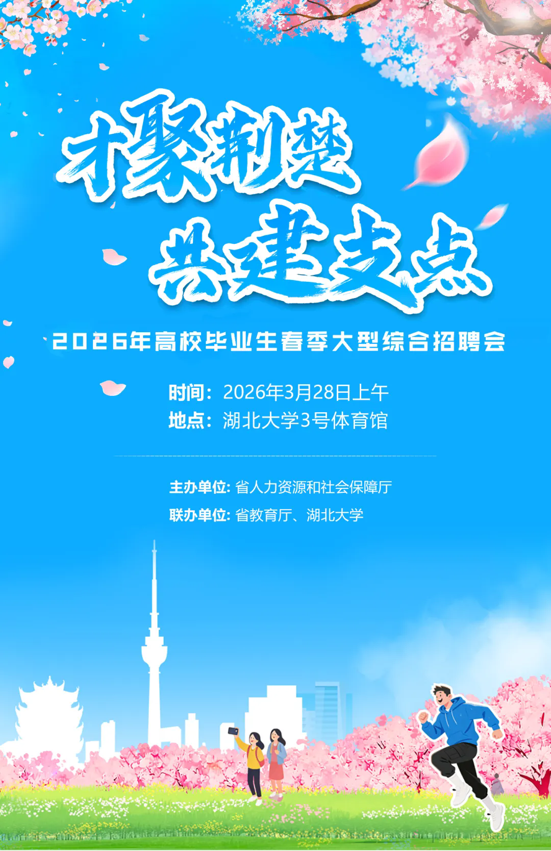 “才聚荆楚·共建支点”高校毕业生春季大型综合招聘会将于3月28日上午在湖北大学举行。