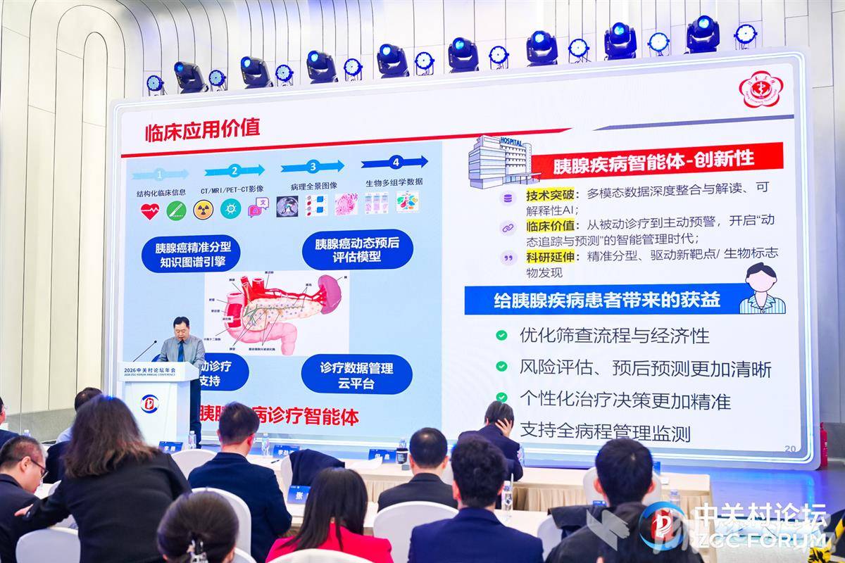 湖北日报讯(记者李玉麟、文俊)26日上午,中关村论坛年会配套活动“医学AI创新与发展大会”在北京中关村国际创新中心举行。本场论坛最受人关注的是,北京大学第三医院联合大通智能科学团队发布胰腺疾病智能体,并举行揭幕仪式。此外现场还重磅发布了《医学机构人工智能应用与治理专家共识(2026年版)》,回应行业规范发展痛点。