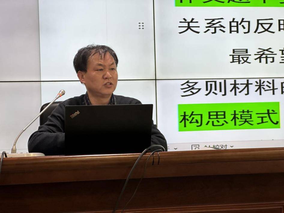 3月25日上午,工作室主持人、公安县第一中学祝中清老师以“借助概念思维,赋能高中议论文写作”为主题,带来了针对性极强的高三作文备考专题指导。他指出,当前学生议论文写作普遍存在立意同质化、论证逻辑松散等问题,其中的一个重要原因在于传统的“读材料—立意”的思维定式局限。为此,他提出构建“读材料—提取概念—分析概念关系—立意”的全新思维模式,从本质上破解议论文写作的思维困境。